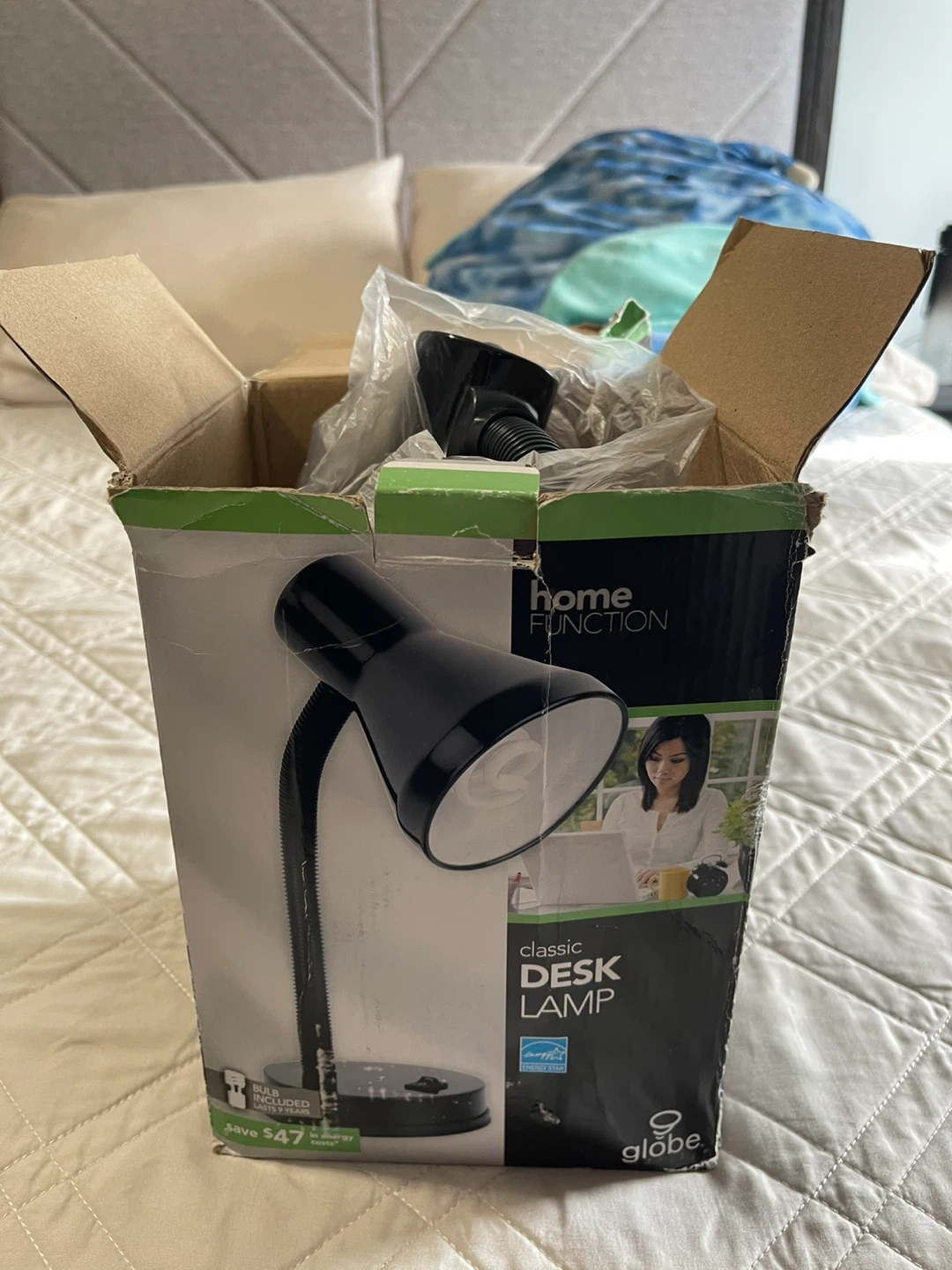 Selling a Globe Classic Desk Lamp in black. It's still in its original box and includes all components. Perfect for a home office or study space!