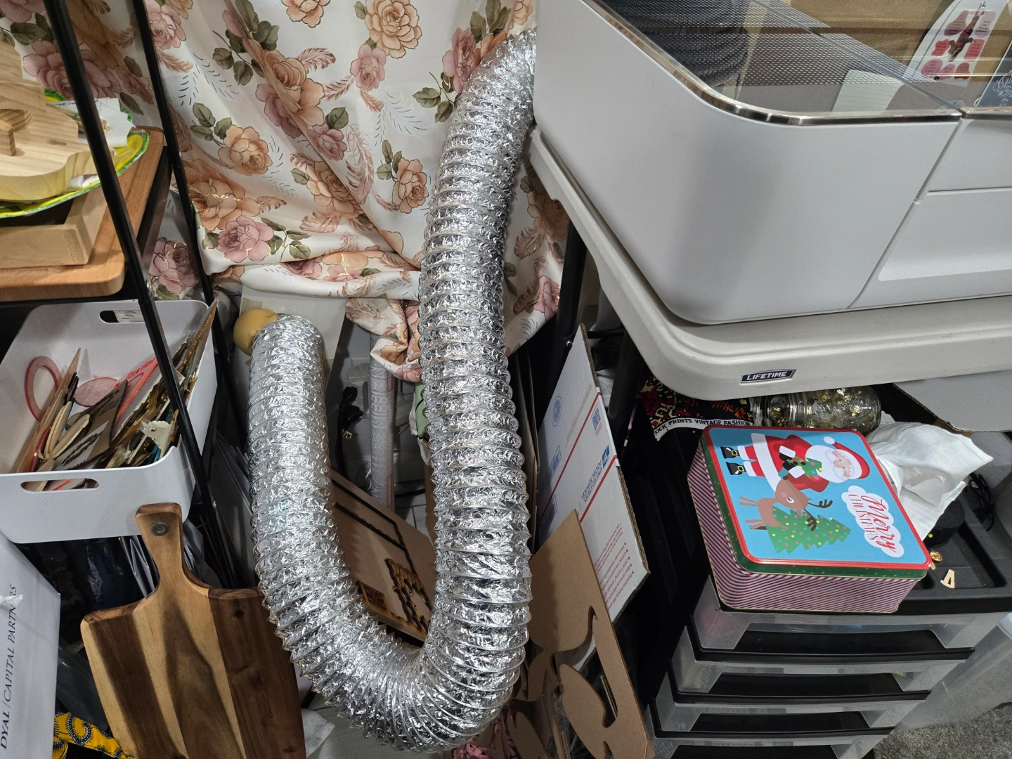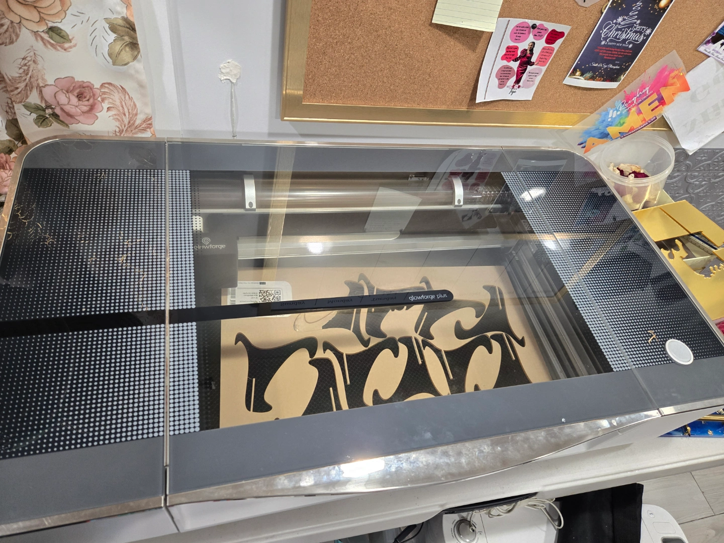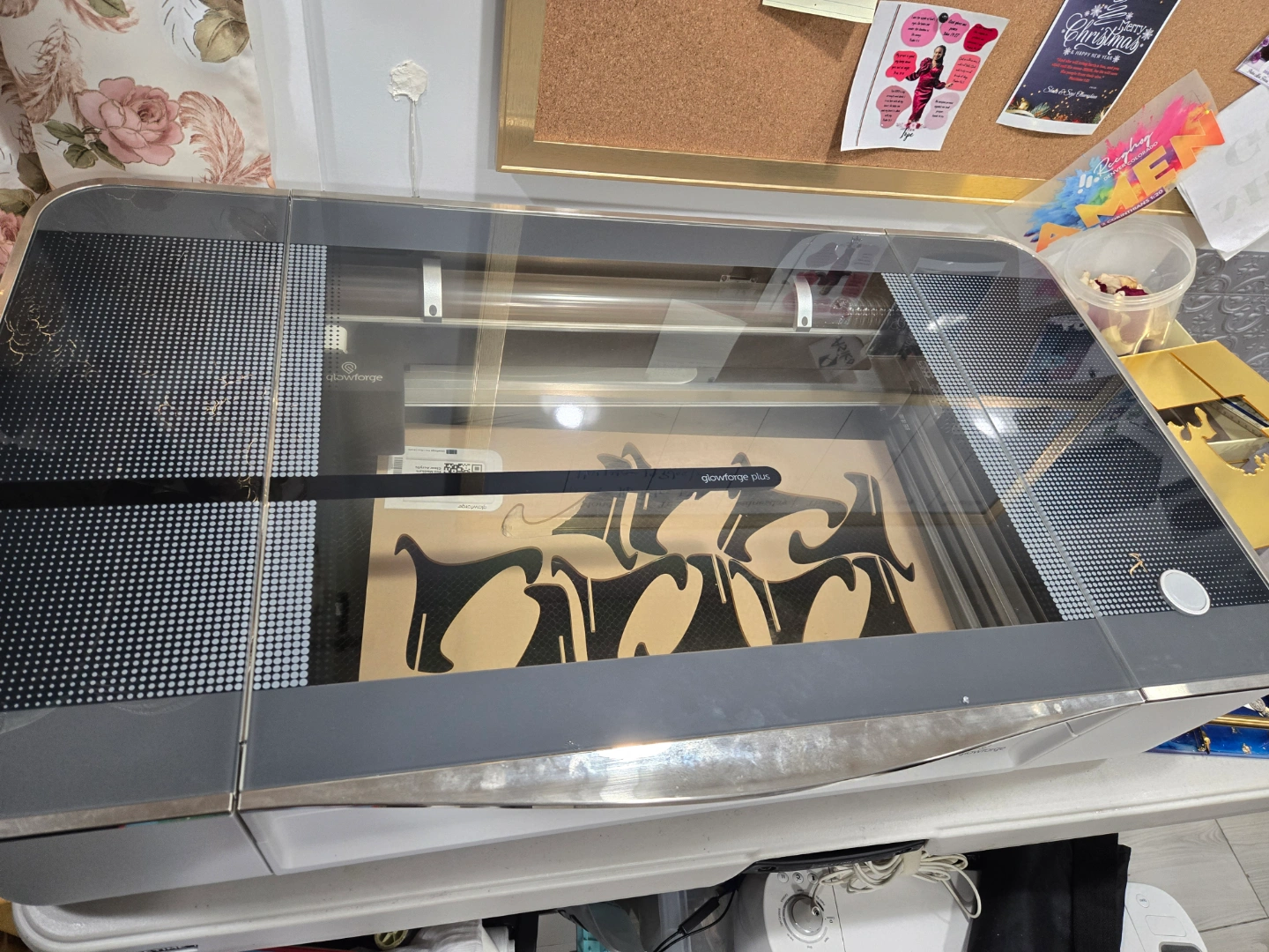 Laser cutter, good condition. White and silver. Glass top. Ready to use. original box still available