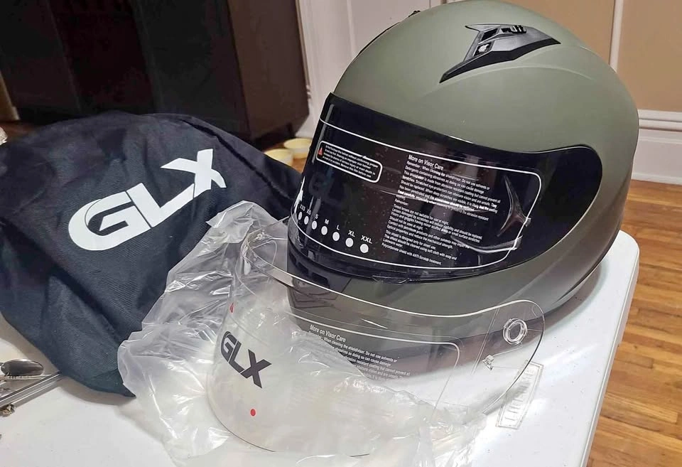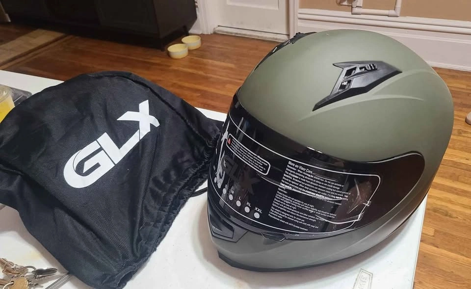 Brand New GLX GX11 Compact Motorcycle Helmet - Camo, X-Large - Full Face w/ Tinted and clear Visor, DOT Approved Matching carbon knuckle gloves XL $80 for both. Will not seperate.