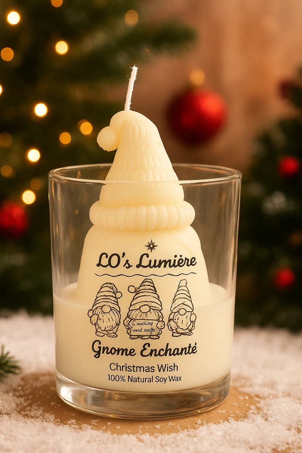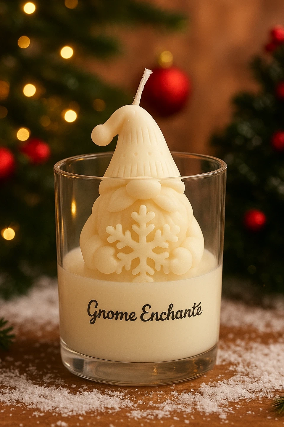 60I'm selling a Gnome Enchanté Christmas Wish candle. It's made with 100% natural soy wax. This candle features a cute gnome design, perfect for adding a touch of whimsy to your holiday decor