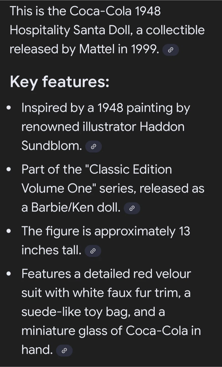Coca-Cola Santa Classic Edition 1948 Hospitality Doll