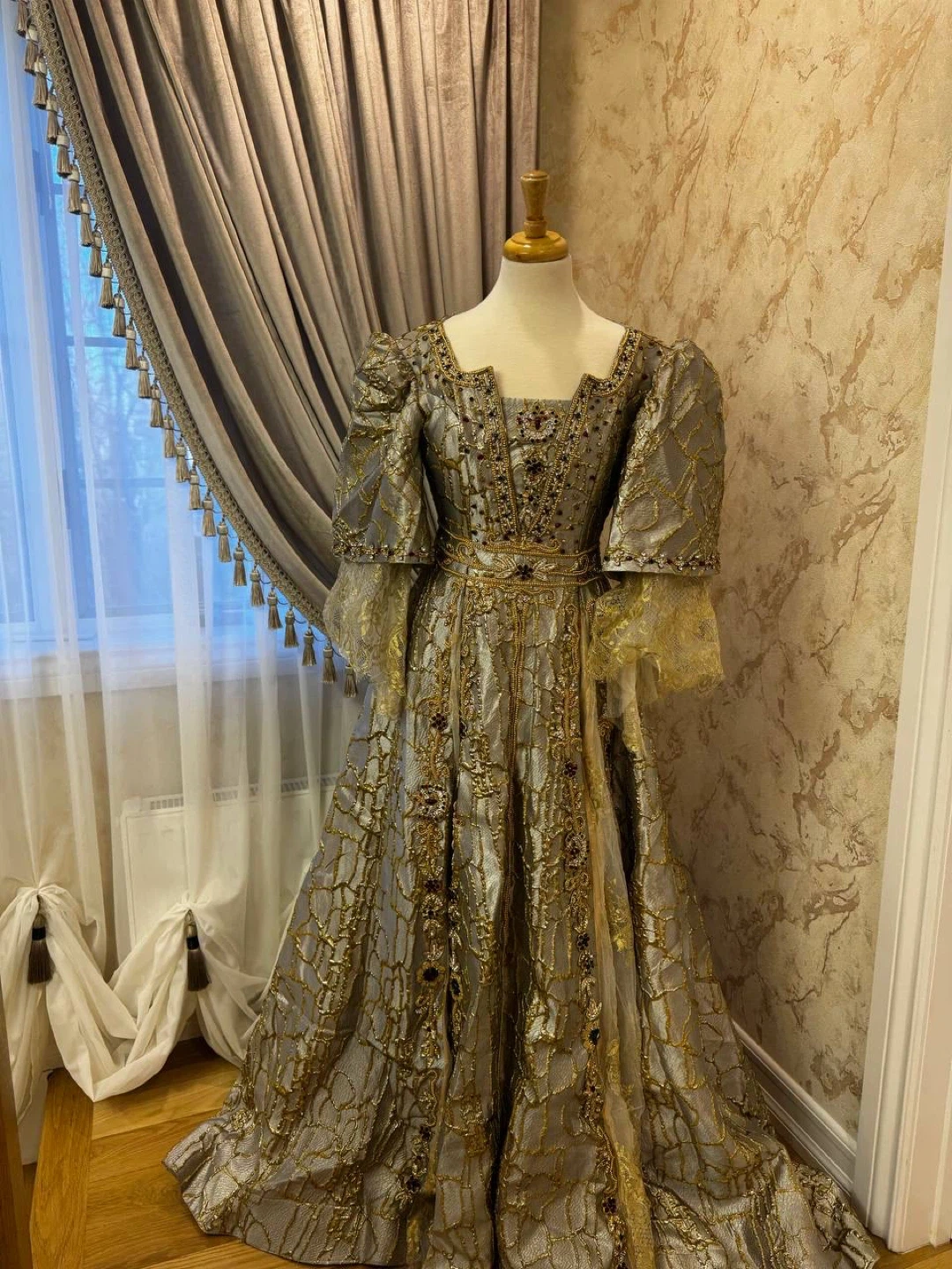 23Selling a beautiful gold dress with three-quarter sleeves with beautiful headpiece. Perfect for special occasions.