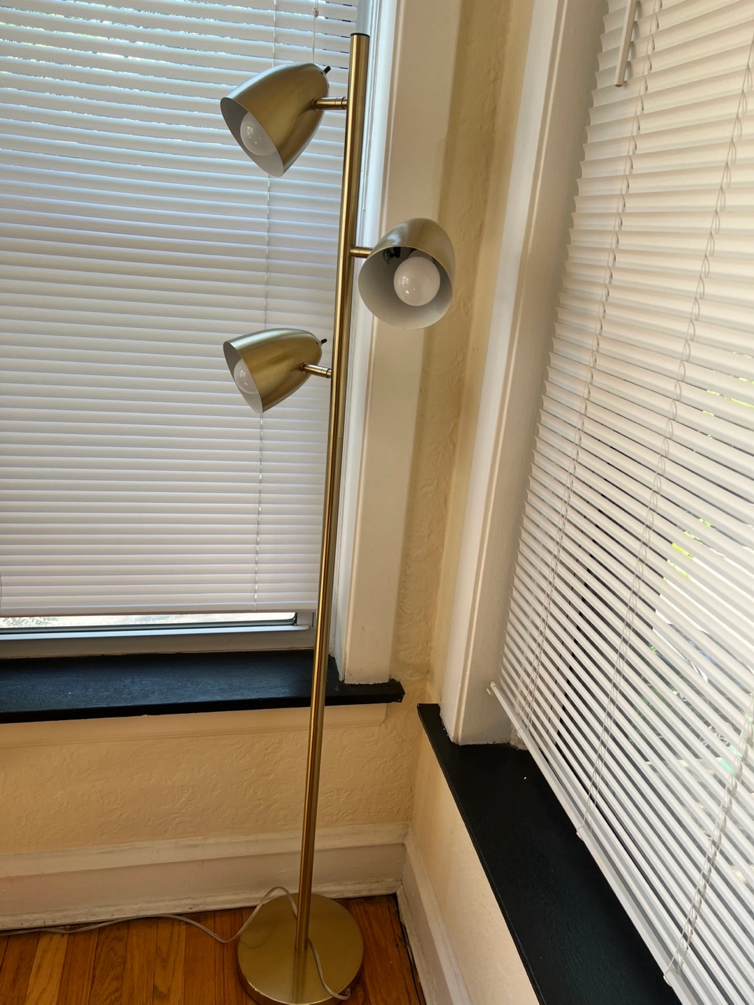 18Selling a stylish floor lamp with a gold finish! It features multiple adjustable heads, making it perfect for directing light where you need it. It's in great condition and would be a lovely addition to any room