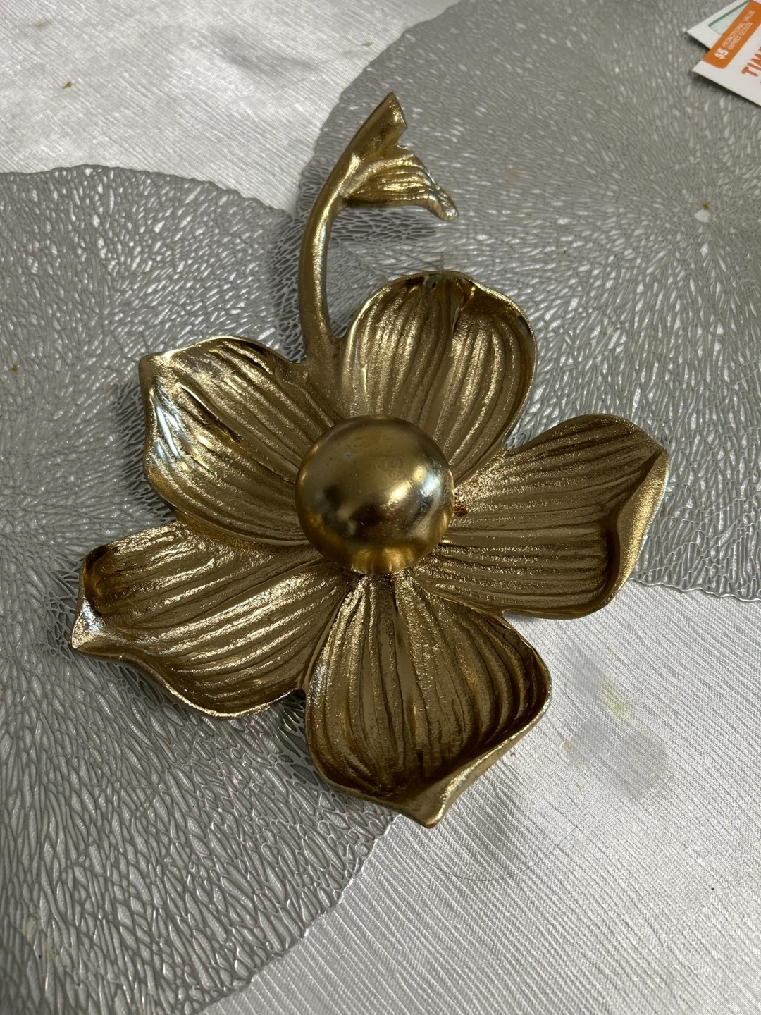 Selling a beautiful gold flower candle holder. It's in good condition and would look great as a centerpiece or accent piece in any room! π₯π₯π₯π₯