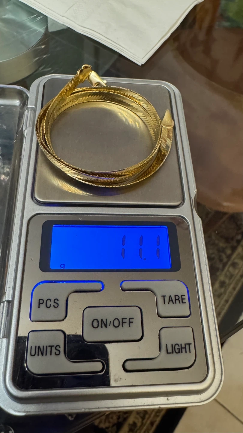 Selling a gold herringbone necklace. It's 50cm long and weighs 11.1g Firm on price
