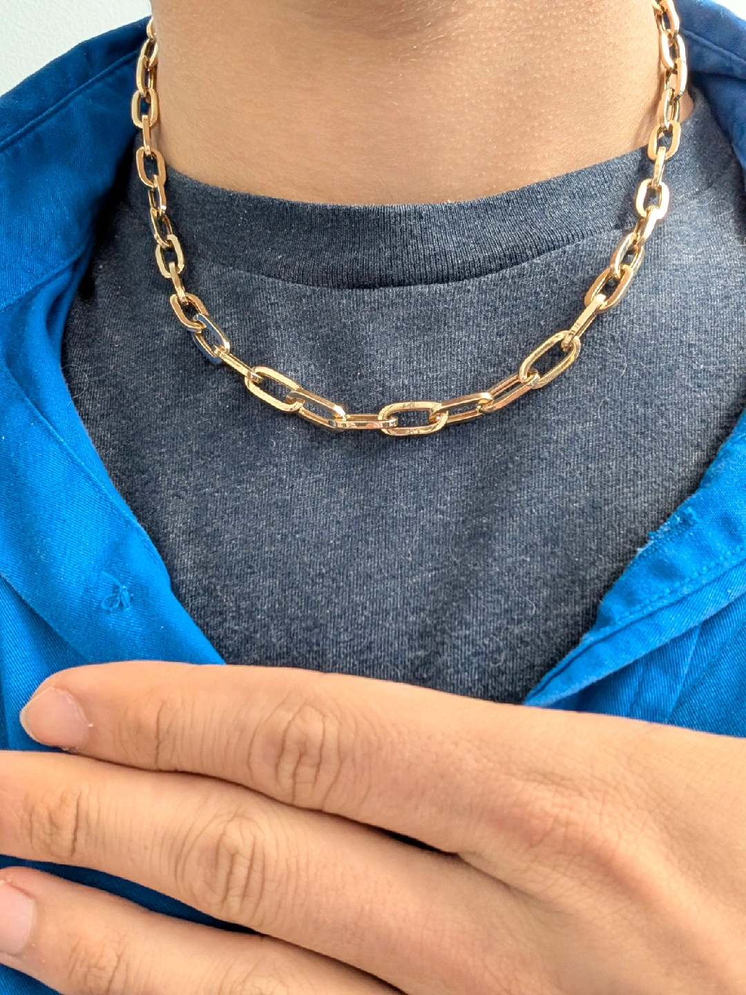Selling a stylish paperclip gold link chain necklace! It's in great condition and ready to add a touch of elegance to any outfit. Yellow Gold, 13.50g, 6.75mm, 20", semi hollow, and 14kt . if you'd like to see in person or purchase then please come by 295 S Schmidt Rd, Bolingbrook, IL 60440 and either ask for Alec, tell them Alec sent ya, or show them this post! 7 day guarantee, I do buy things to help towards the price, and if you want to send an offer just shoot me a text :3 . no shipping, cash or card only, if you'd like to send an offer, I'd be happy to hear it! Please do not ask for "best/lowest/final price" . (ignore) 1330674
