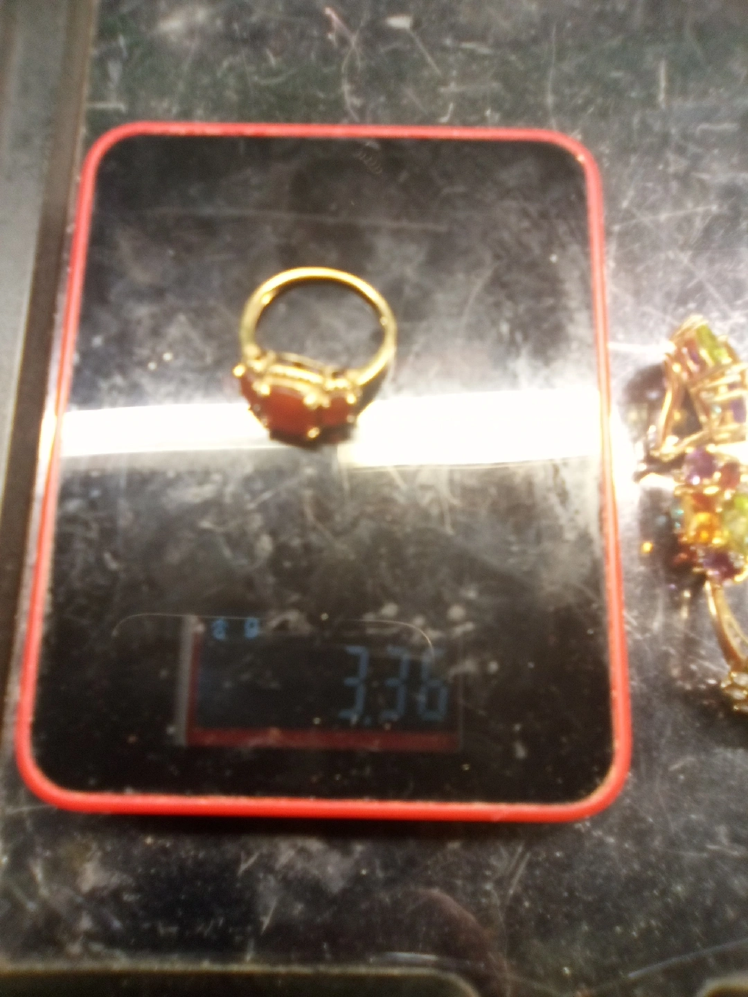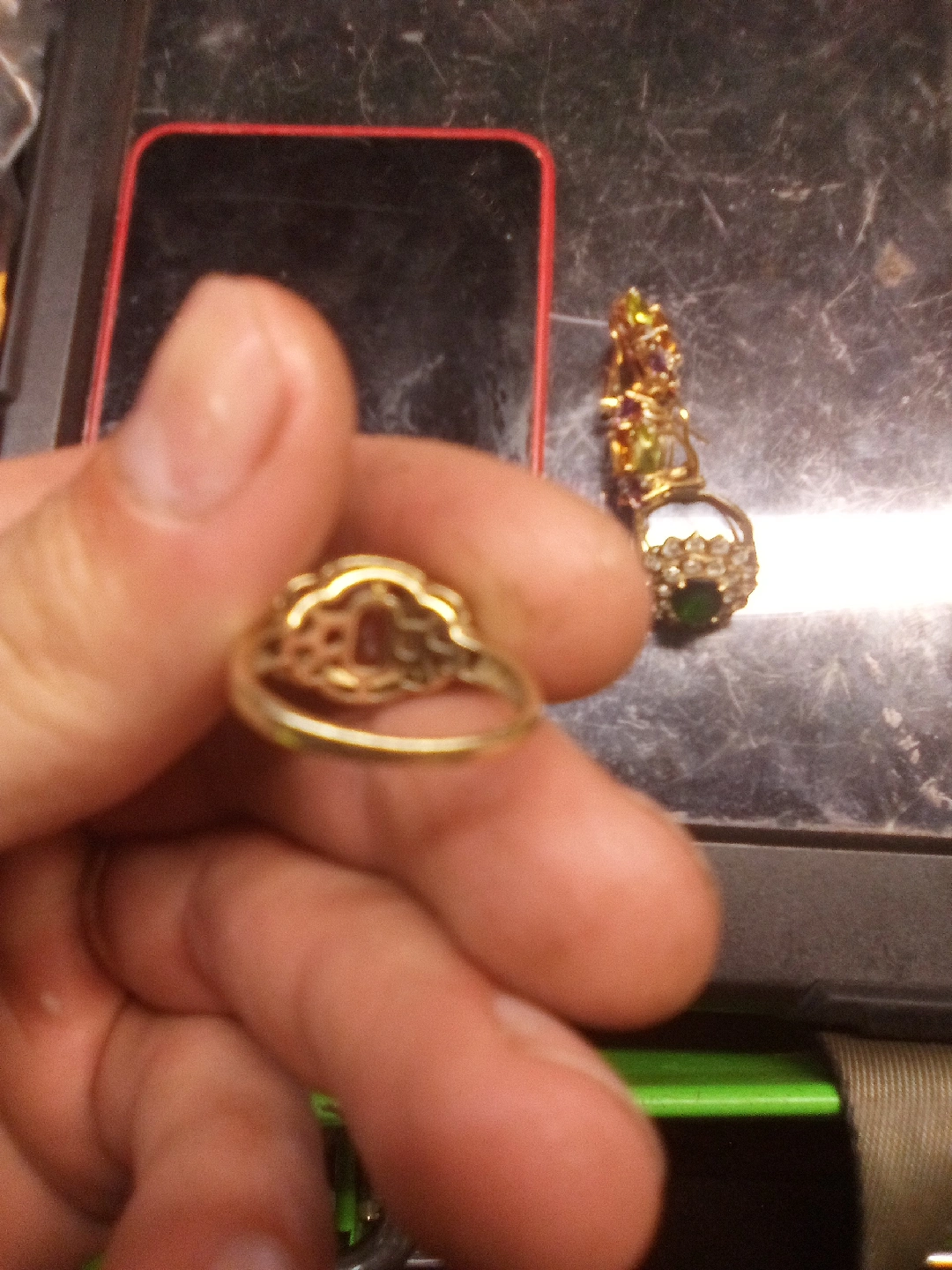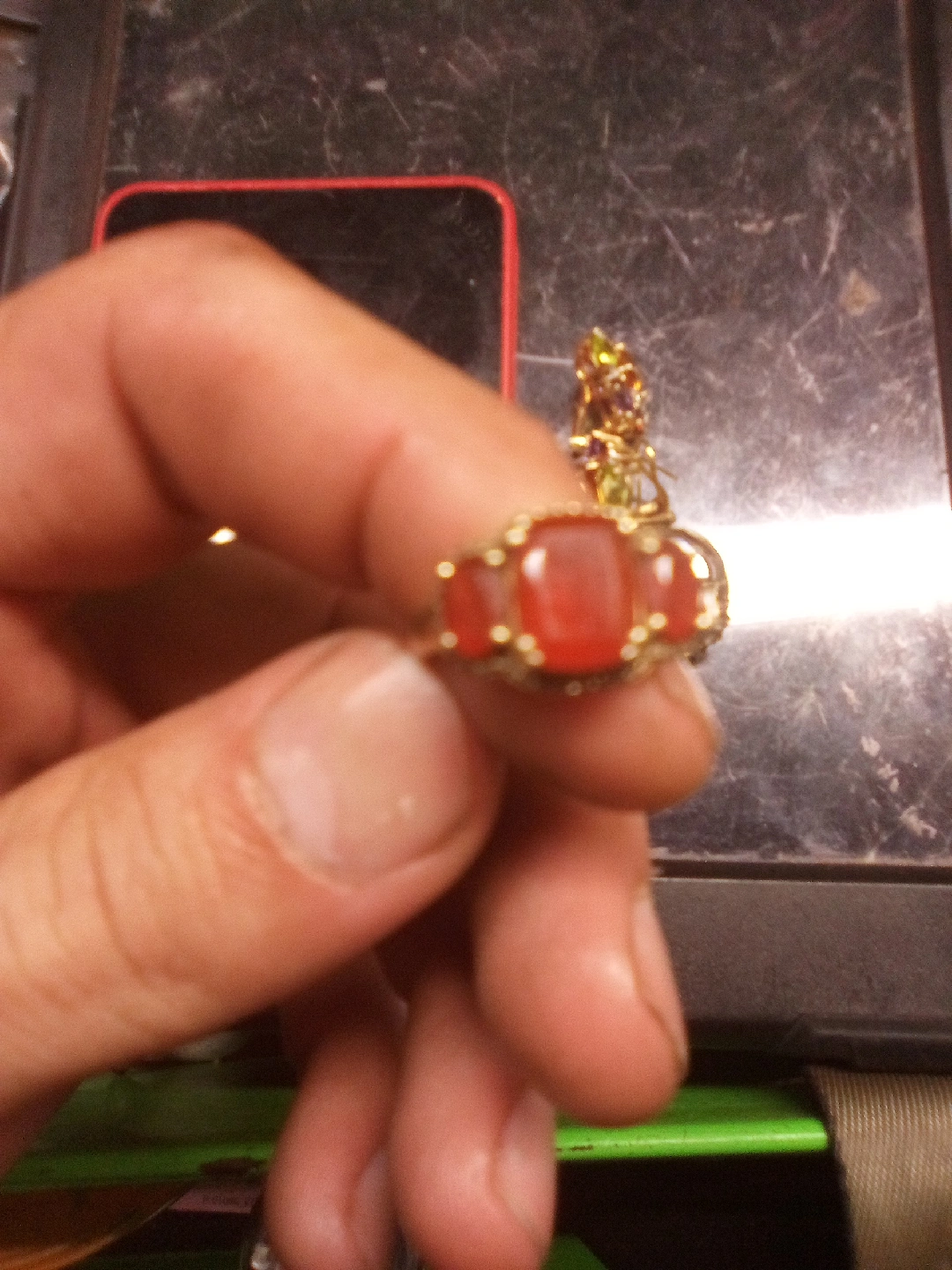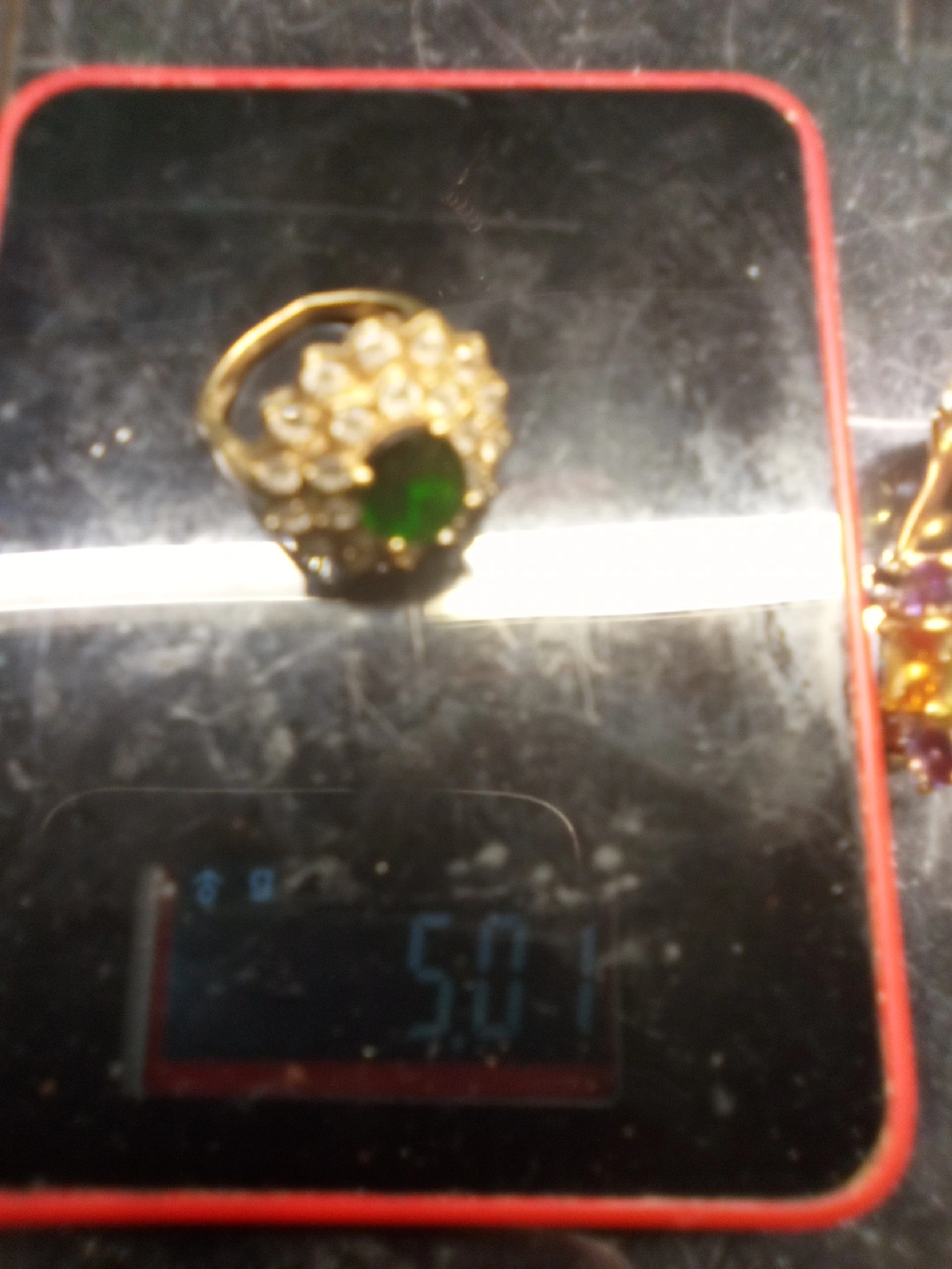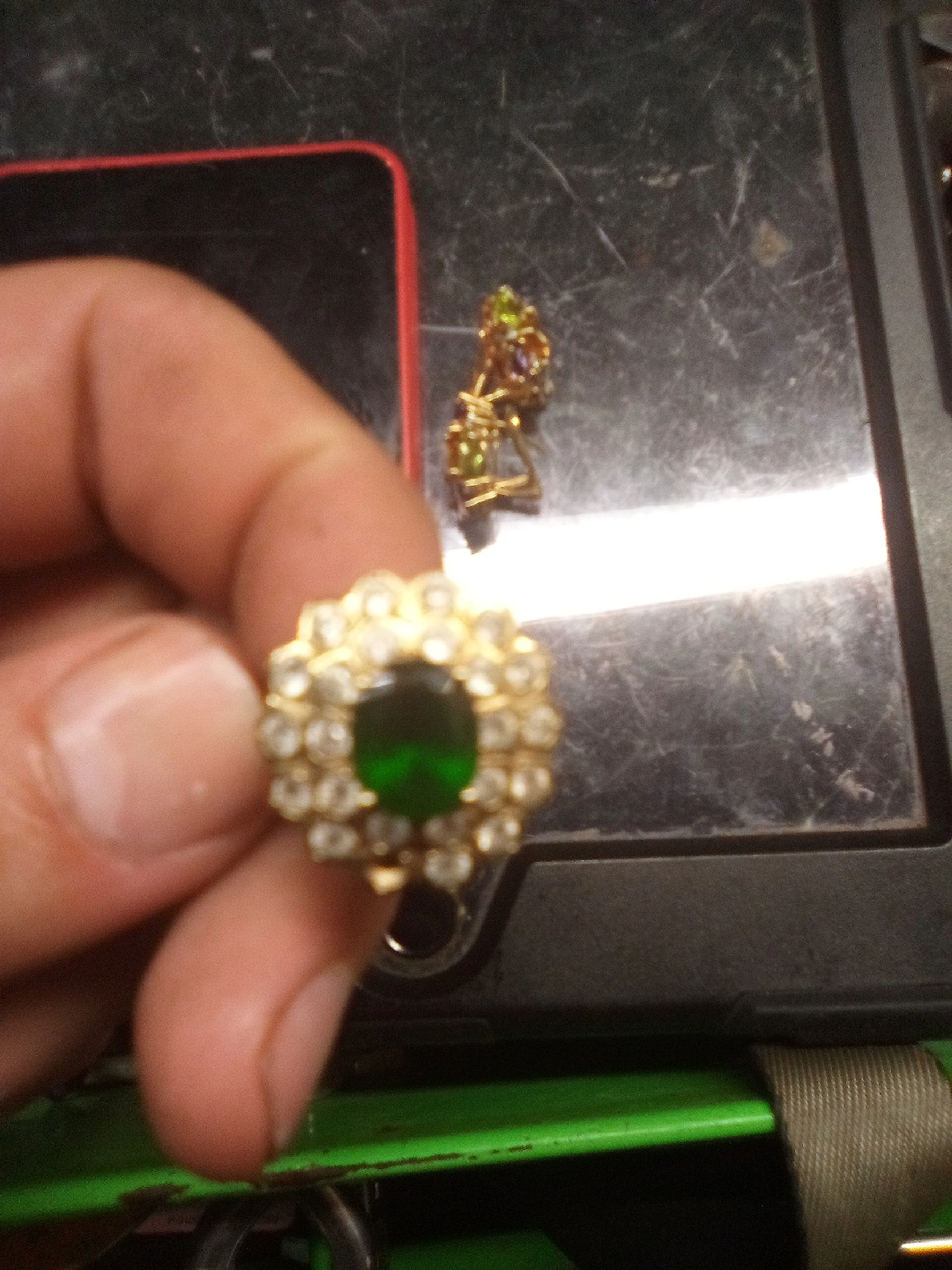 2 beautiful rings. one with big emerald and diamonds (one missing) 10k 500$ The other ring is 14k with carnelian gemstones 700$