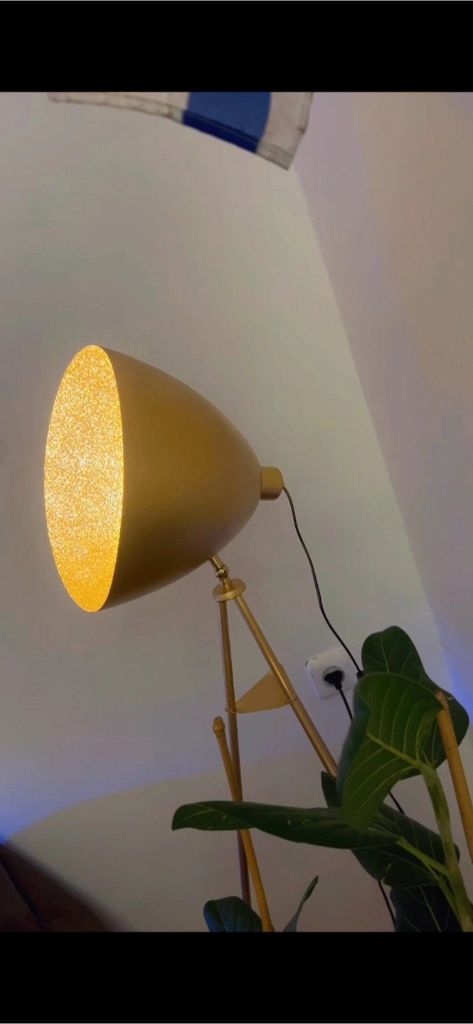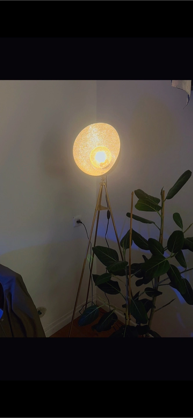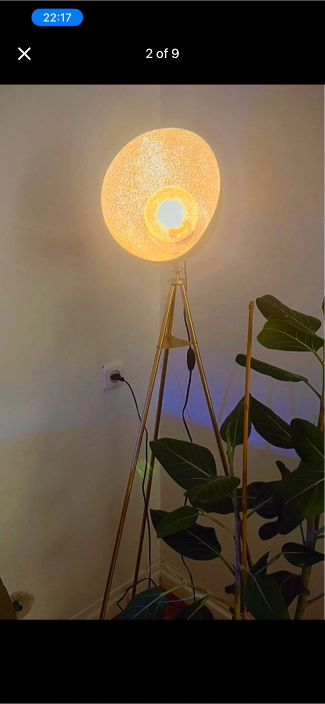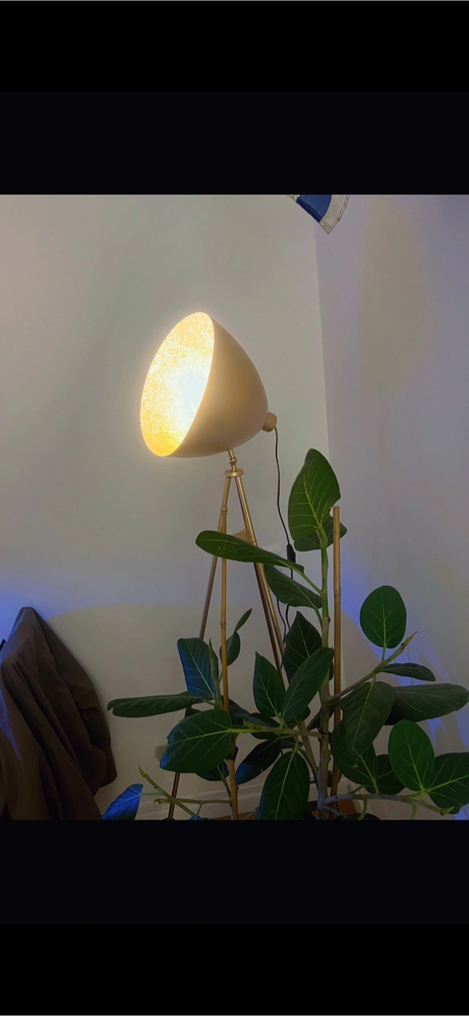 Selling a stylish gold tripod floor lamp! It adds a warm and modern touch to any room. Perfect for creating a cozy atmosphere in your living space or bedroom. Color changing bulb with app! Message for a video of it and more details. It’s really cool!