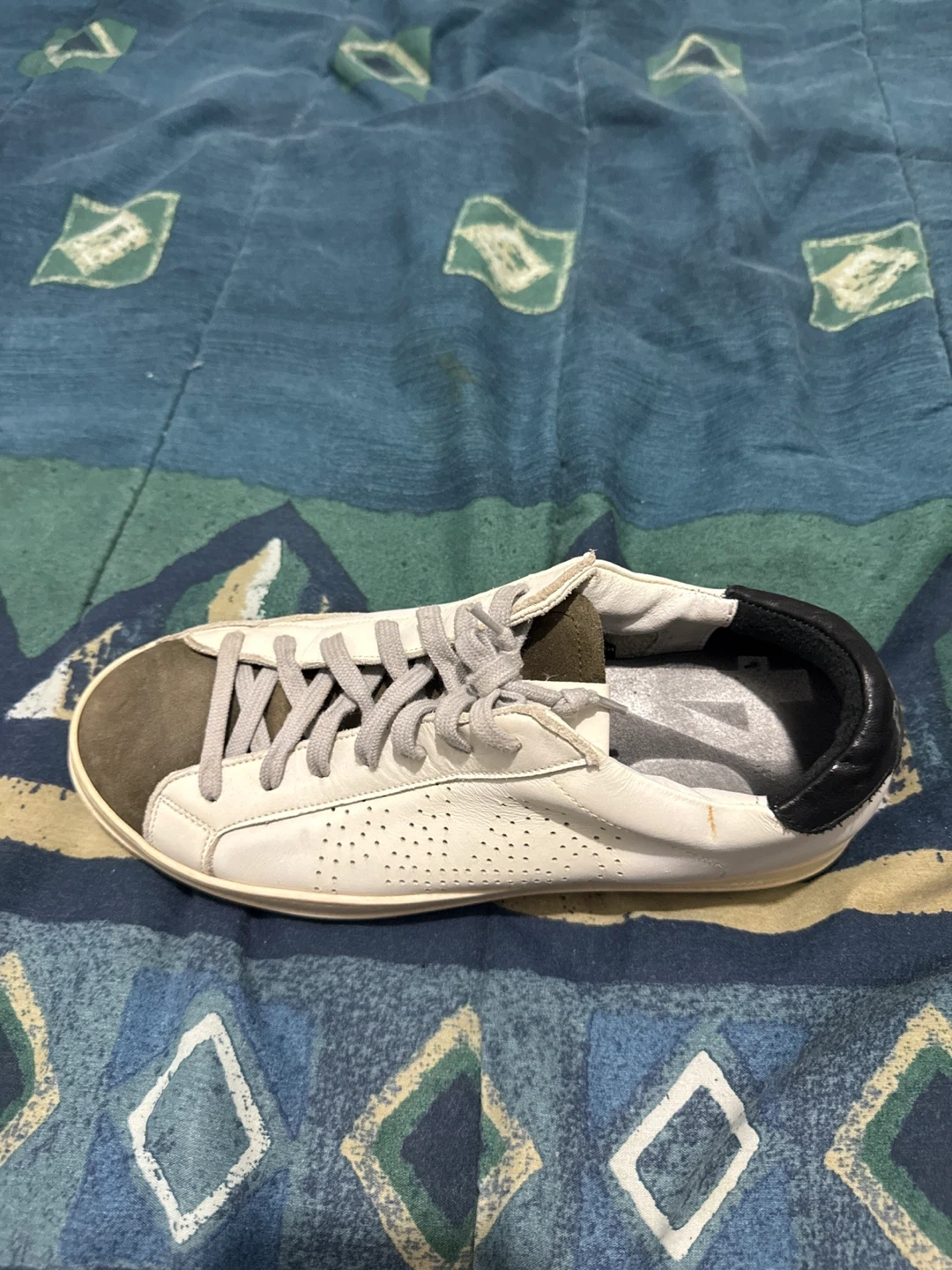 Selling a pair of Golden Goose sneakers in white and olive. They're in used condition, as you can see in the photos. These are a stylish and comfortable option for everyday wear!