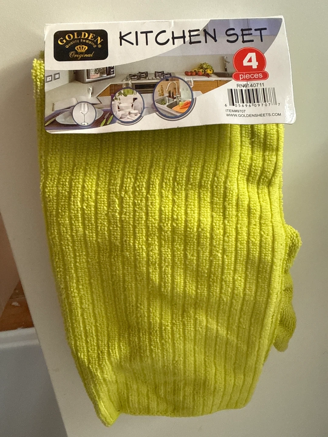 I'm selling a Golden Quality Kitchen Set that includes 4 pieces. The set is a vibrant yellow-green color and appears to be in great condition. Perfect for adding a pop of color to your kitchen!
