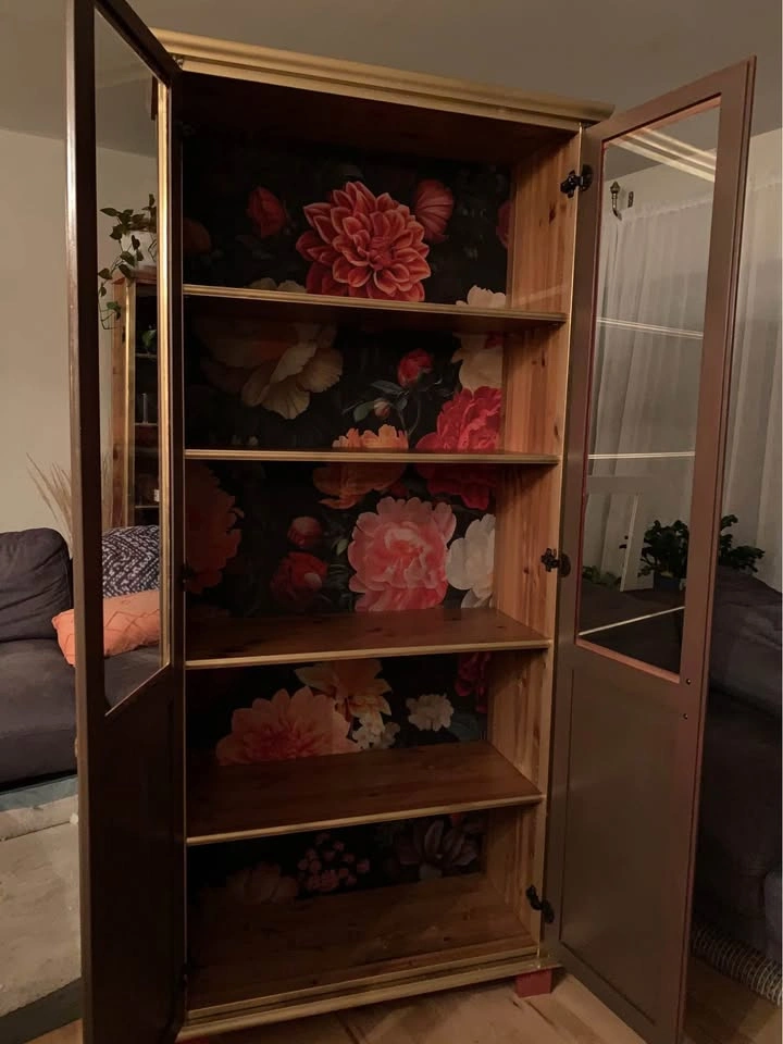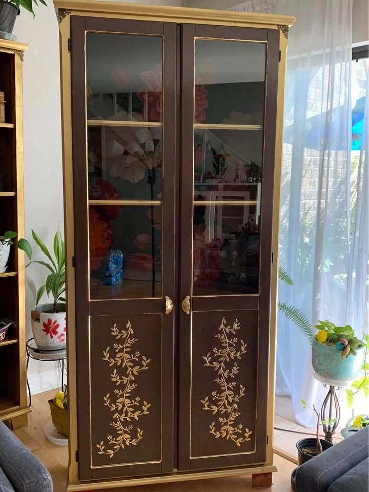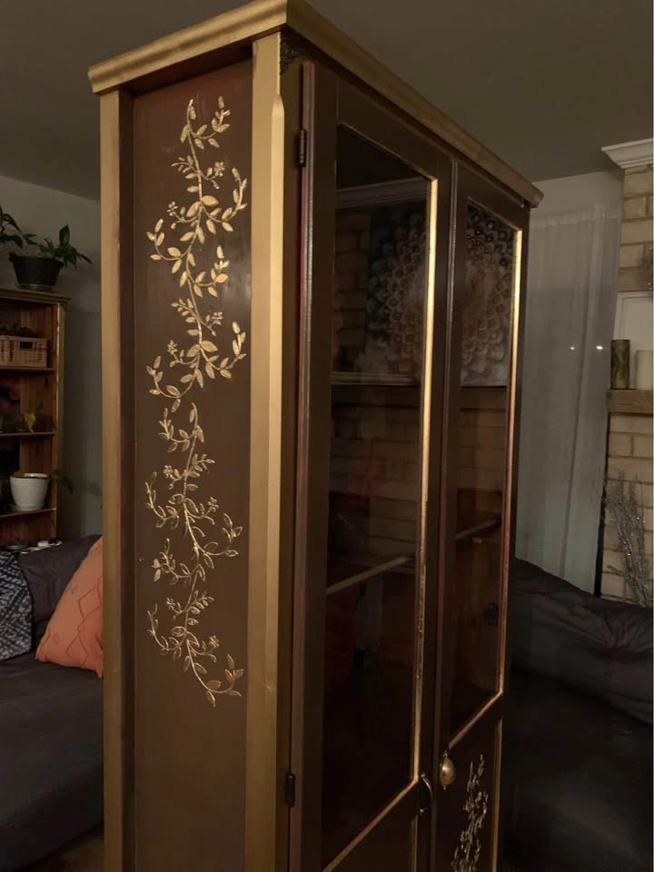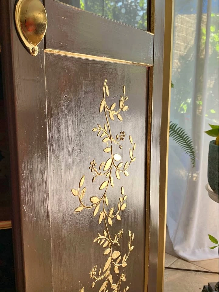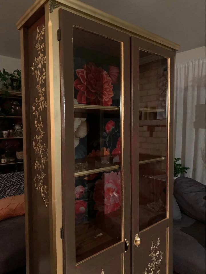 Glass table with gorgeous printed design wood stand & 4 chairs