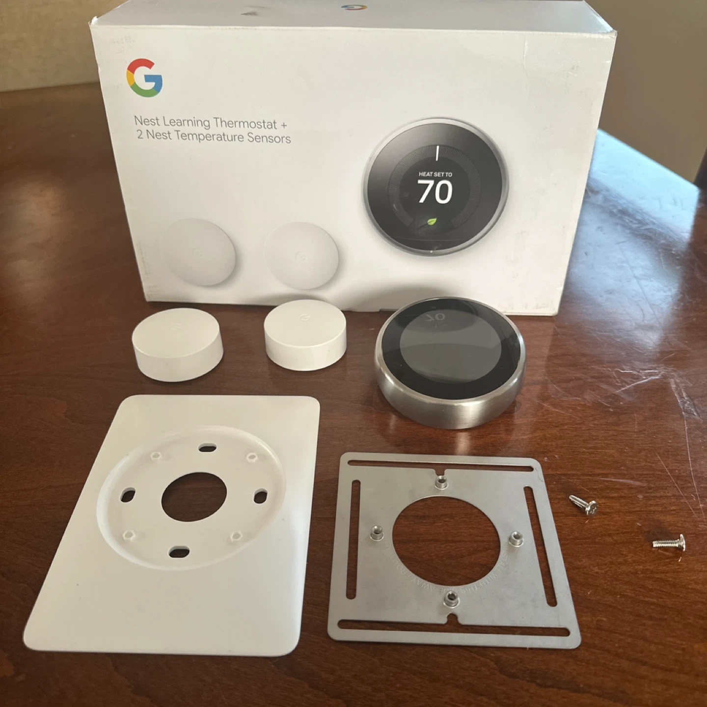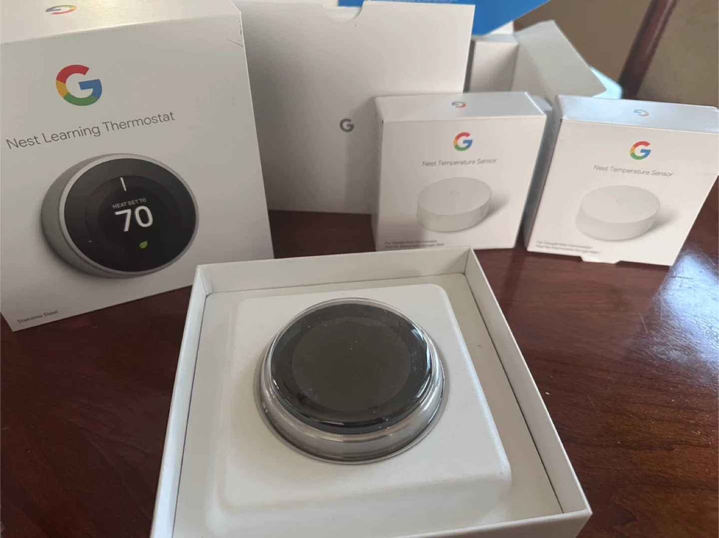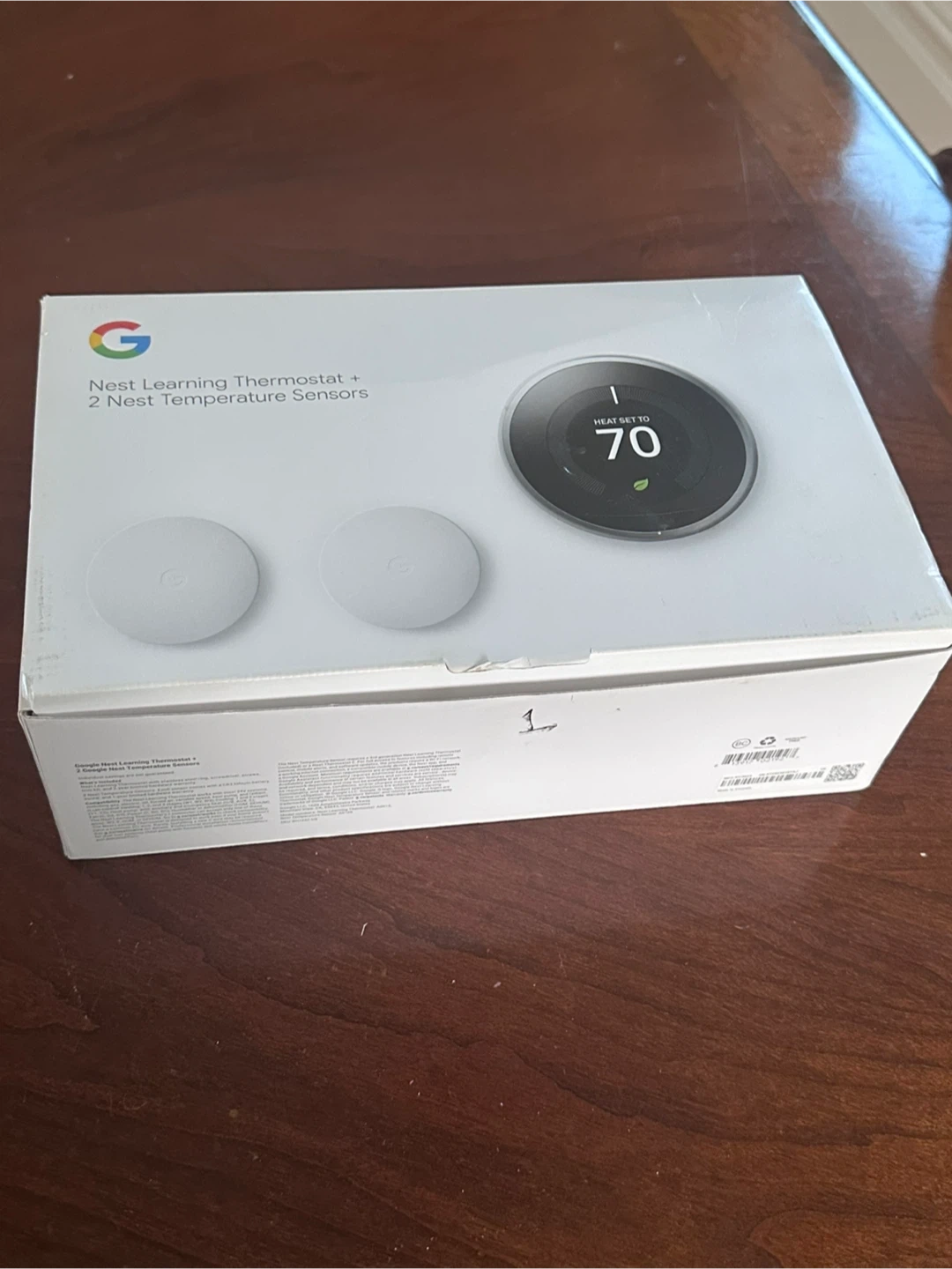 Selling a Google Nest Learning Thermostat with two Nest Temperature Sensors! It comes with the box and all included components. A great way to manage your home's temperature efficiently Used for one heating season then upgraded to Minisplits.