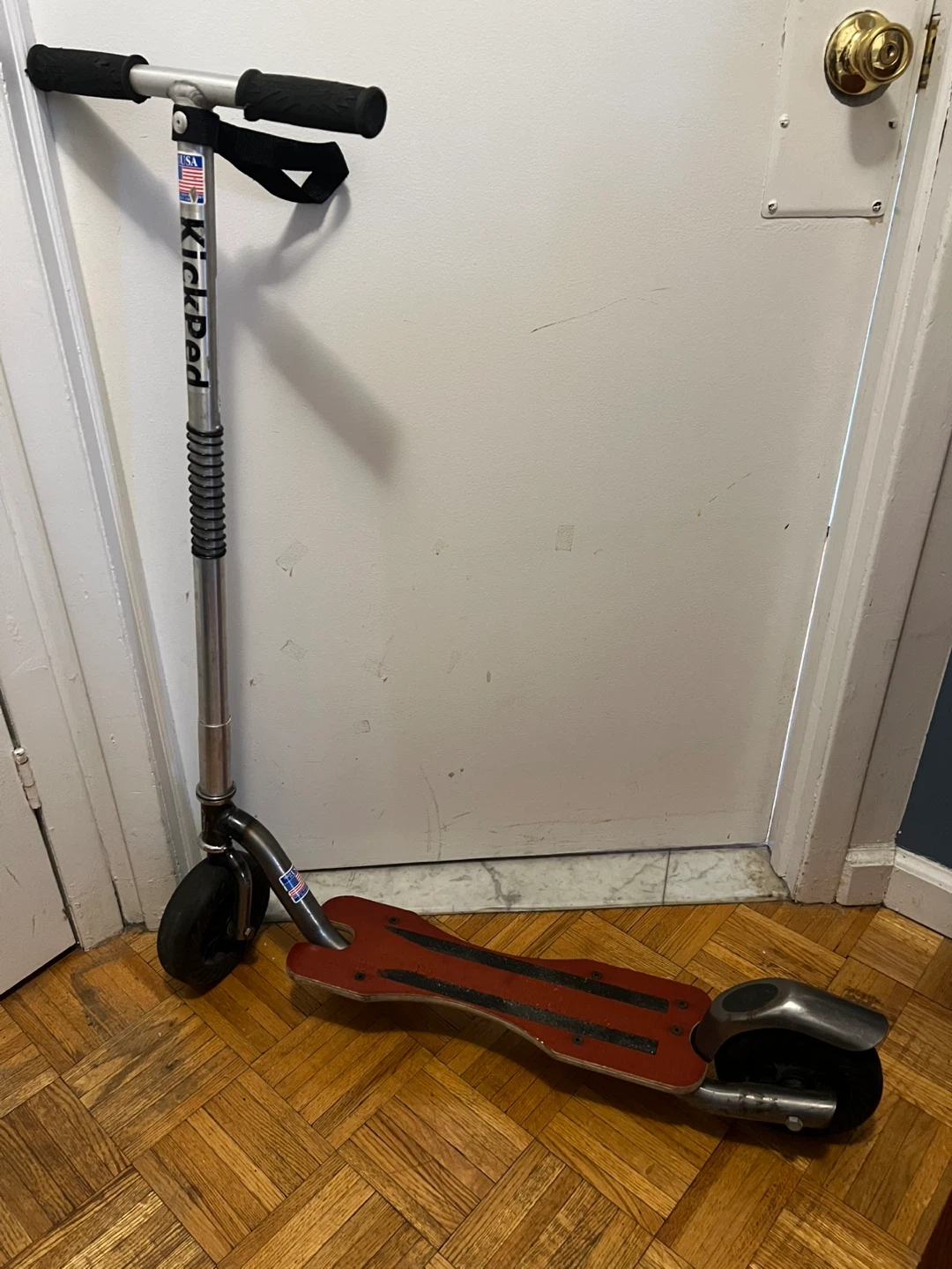 65Adult size non-motorized kick scooter, very heavy duty steel frame with marine plywood deck, solid construction, pneumatic tires, pretty much indestructible. Folds up and can be easily carried over your shoulder with built in strap. Originally $229 new, purchased pre-pandemic from NYCeWheels on the UES which has now closed. A few purely cosmetic blemishes from riding city streets, otherwise in excellent shape. You’ll get a great workout riding this scooter. Nothing stops it-potholes, curbs and stairs are all no match! Here’s some links to YouTube about the scooter- https://youtu.be/Xi4_rrKoTAA?si=O83VJxceBg-l4klX https://youtube.com/shorts/2pR3lwDhv8A?si=7I0wmiF_VvAjRs3U Here’s a link to the manufactures website with all the specs- https://goped.com/go-ped-kick-ped/