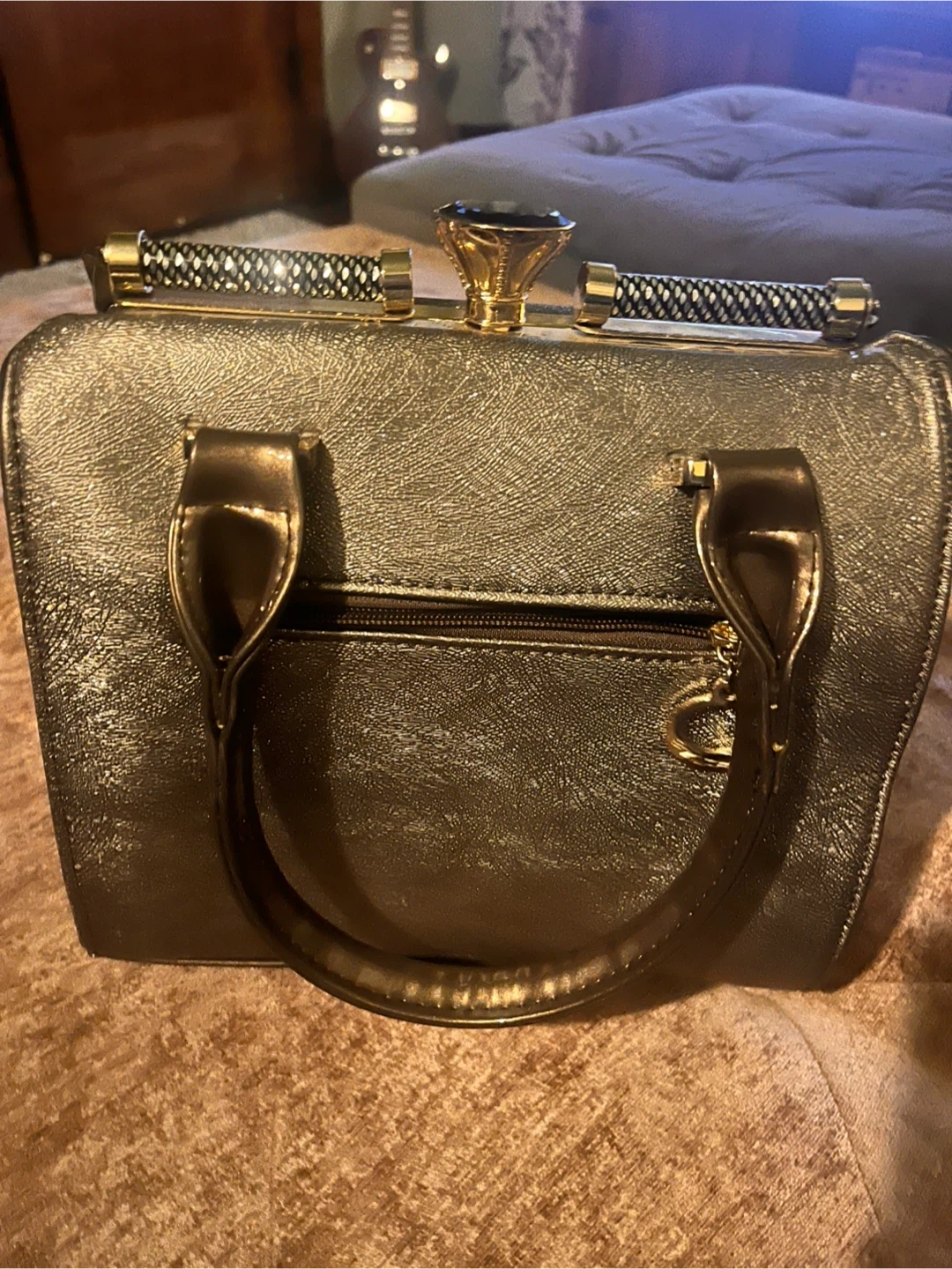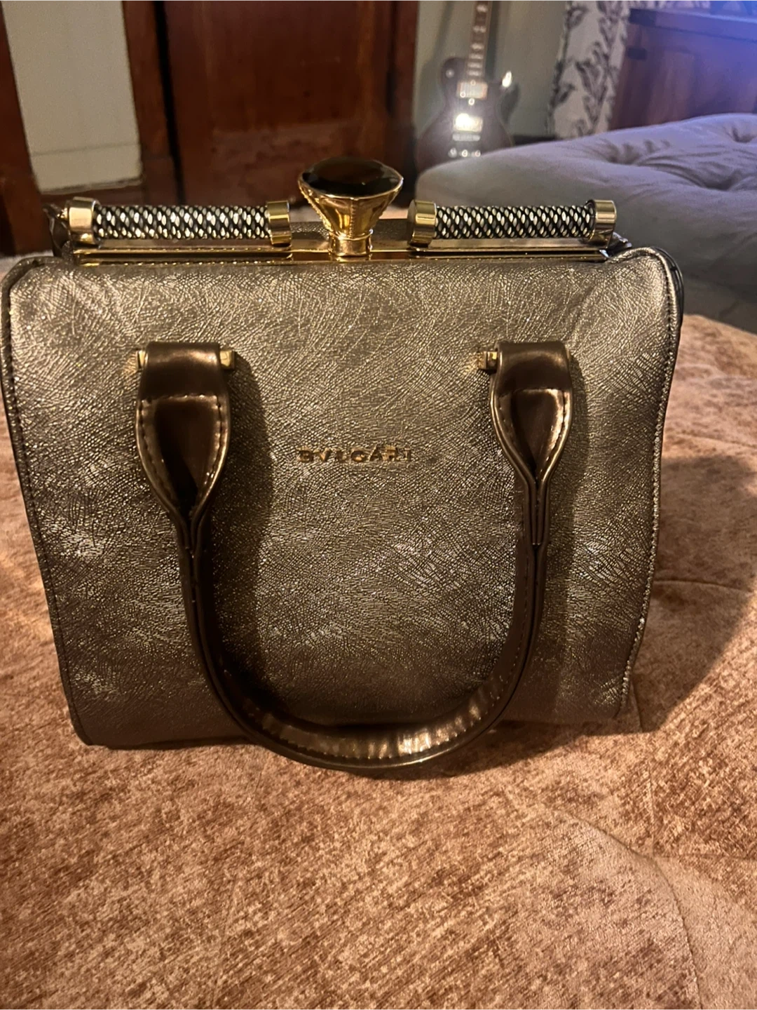 Selling a designer inspired lovely metallic sparkly fancy purse. It's in great condition and ready for a new home!