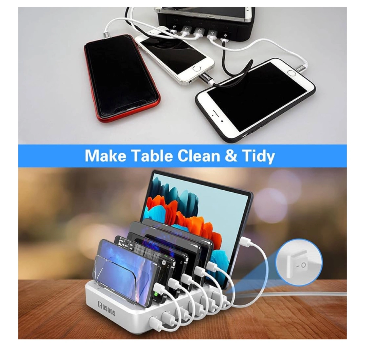 Keep your devices charged and organized with this Gosoos 6-port USB charging station! It's designed for safety and steady charging, outputting 81W and charging 6 devices simultaneously. Features include short-circuit, over-charging, battery, and over-voltage protection. Make your table clean and tidy with this handy charging station!