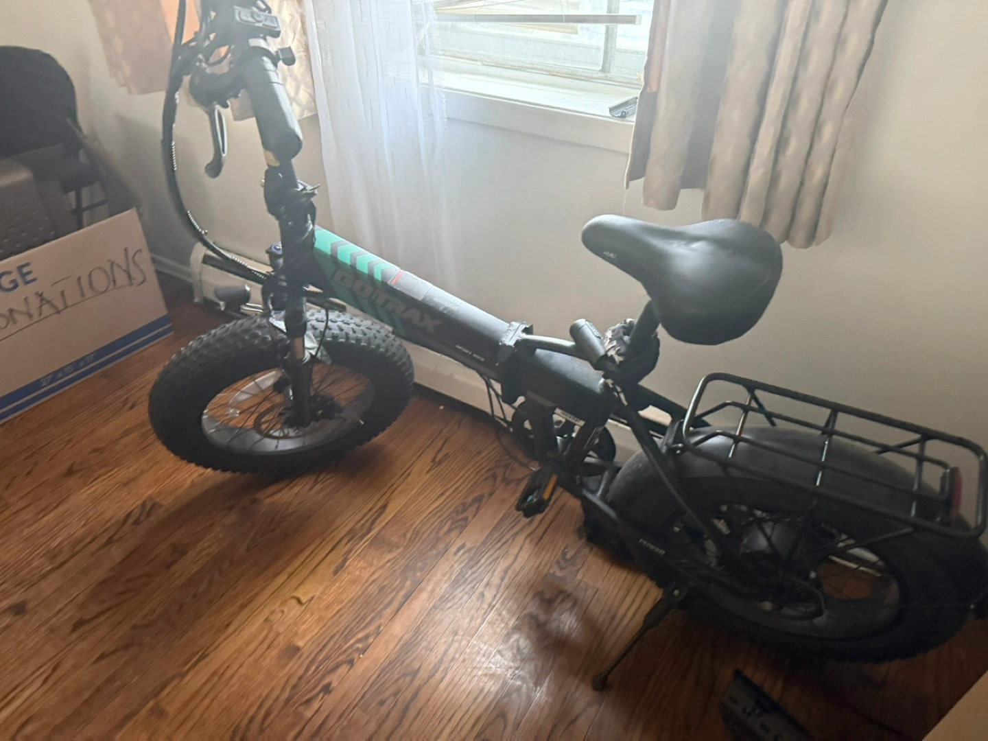 55Selling a used GOTRAX foldable electric bike. Great for commuting or deliveries. • Foldable frame for easy storage • Rear cargo rack • 20” tires in decent condition • Comfortable seat • Electric assist works • Note: Brakes need repair – may require adjustment or replacement