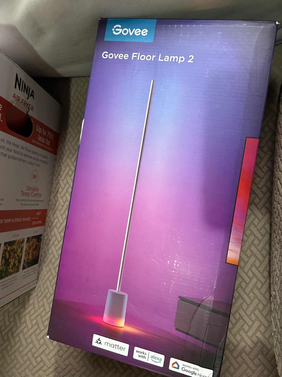 31Selling a Govee Floor Lamp 2. This lamp works with Alexa and Google Home. It also has variable temp control.