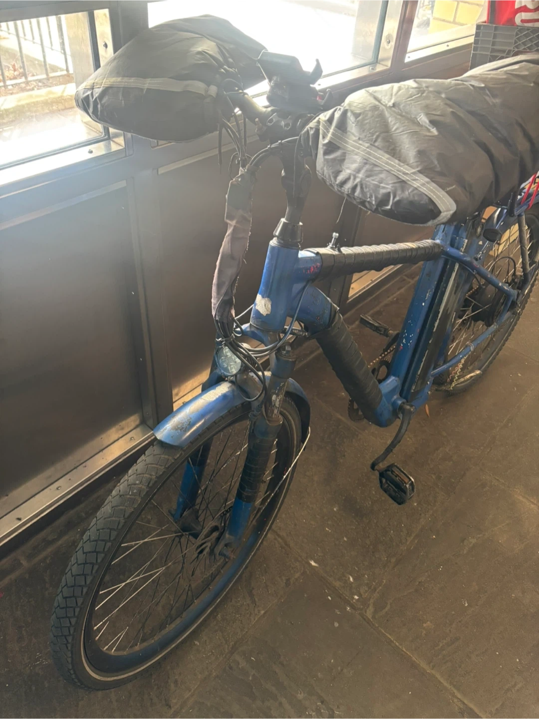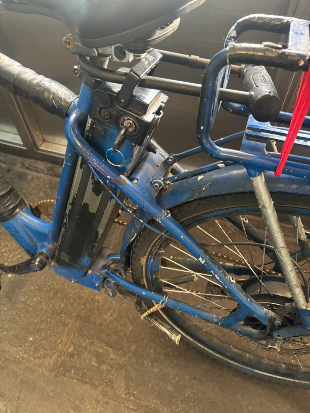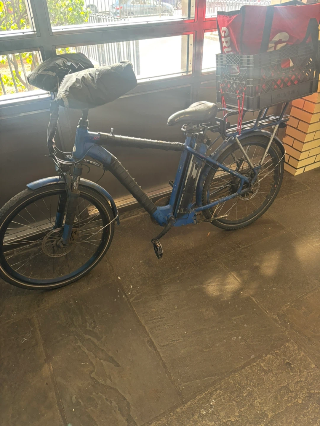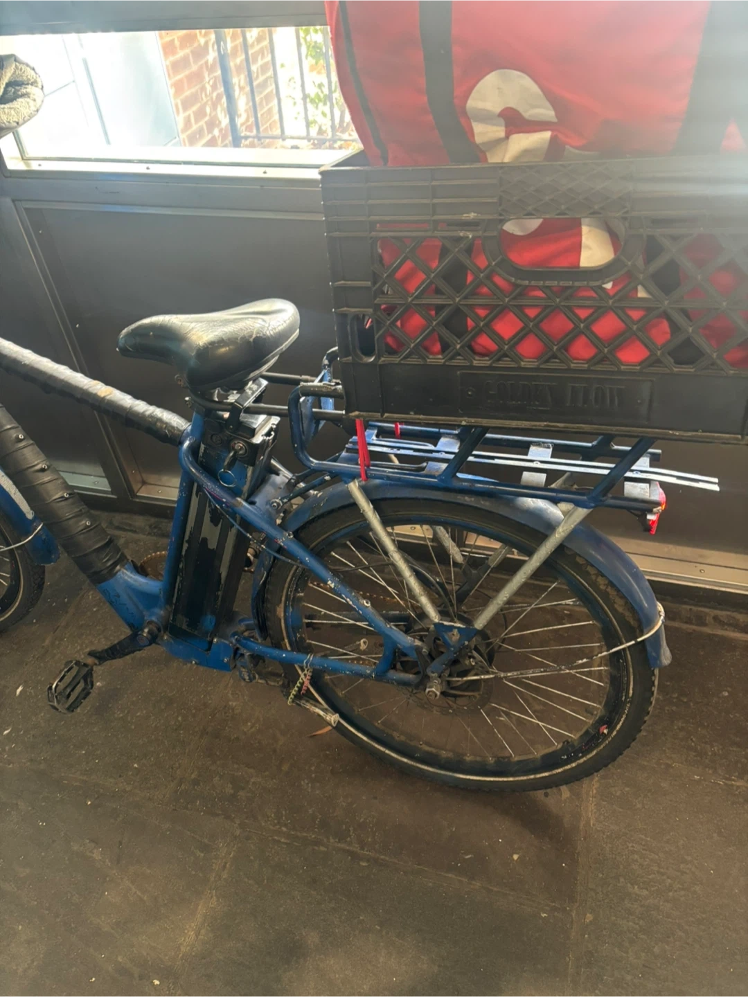Blue Electric Bike with Delivery Crate