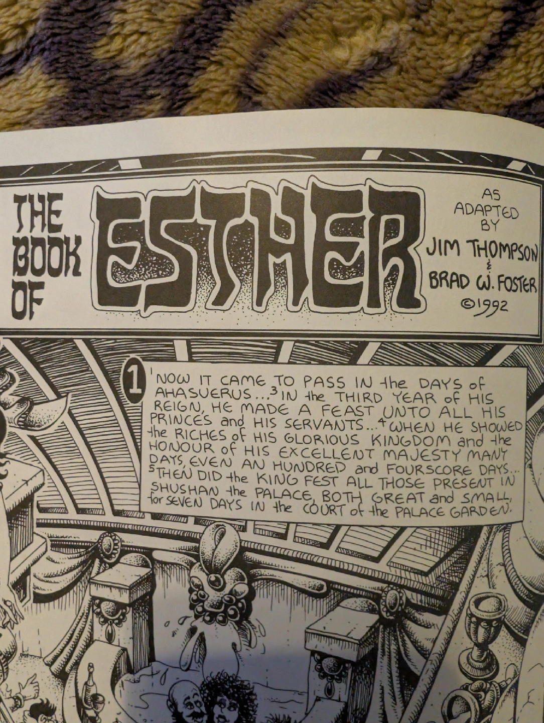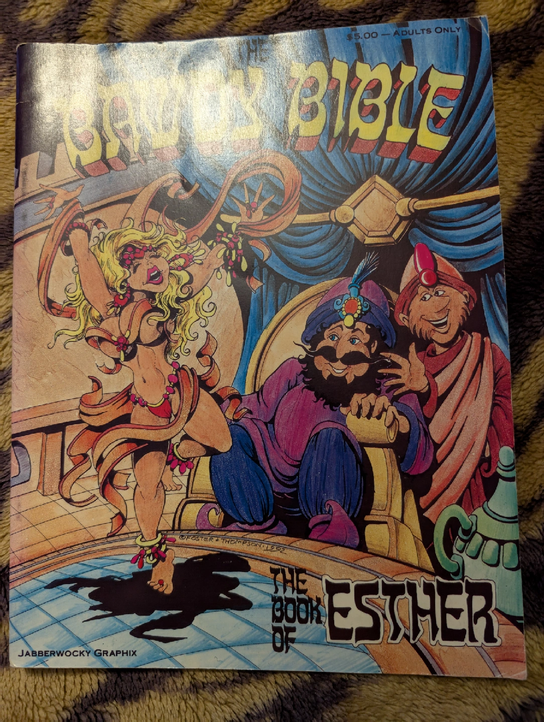 Selling The Vintage Bawdy Bible: The Book of Esther, issue one. It's an adult comic book adapted by Jim Thompson & Brad W. Foster, copyright 1992. This comic book is in excellent condition. Published by Jabberwocky Graphic Irving TX 1992 First Edition.