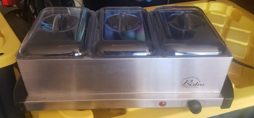 Stainless steel food warmer/buffet server with 3 compartments. Includes lids. Excellent condition. Rarely used.