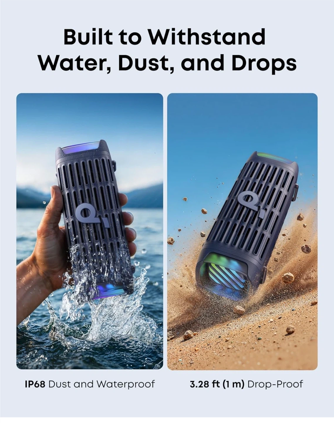 It's built to withstand water, dust, and drops, making it perfect for outdoor adventures!