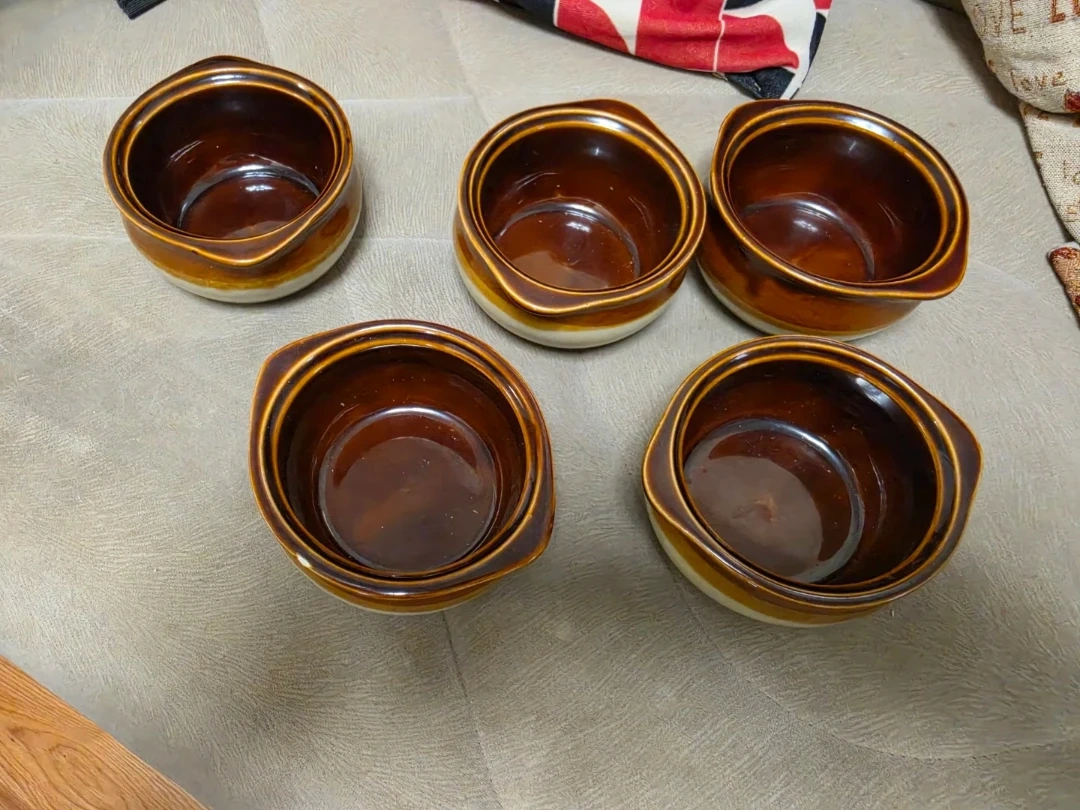 Set of 5 Ramekins - Brown and Cream Glaze
