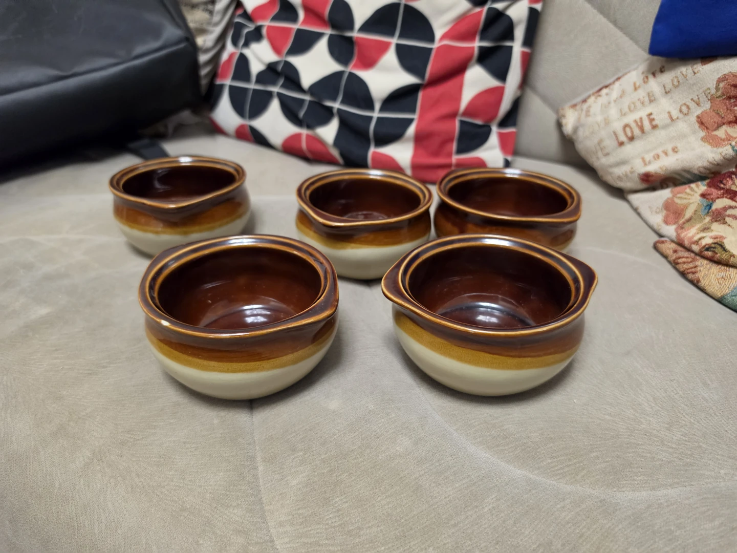 Set of 5 Ramekins - Brown and Cream Glaze