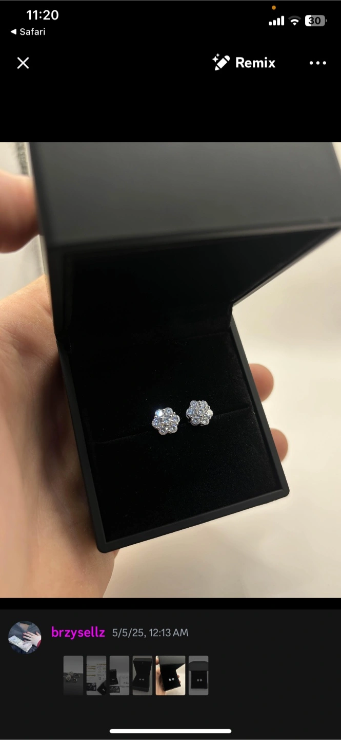 Stunning flower-shaped moissanite stud earrings. Comes with original box and GRA grading report. Limited lifetime warranty. Elegant and sparkly.