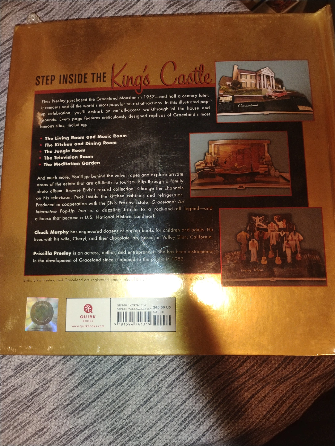 Selling a copy of Graceland: An Interactive Pop-Up Tour by Chuck Murphy. This book offers a unique, interactive walkthrough of Elvis Presley's Graceland mansion. Originally priced at $40.00, it's a dazzling tribute to a rock-and-roll legend and a U.S. National Historic landmark! Perfect for Elvis fans and pop-up book collectors