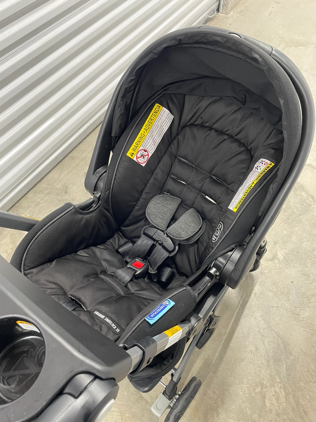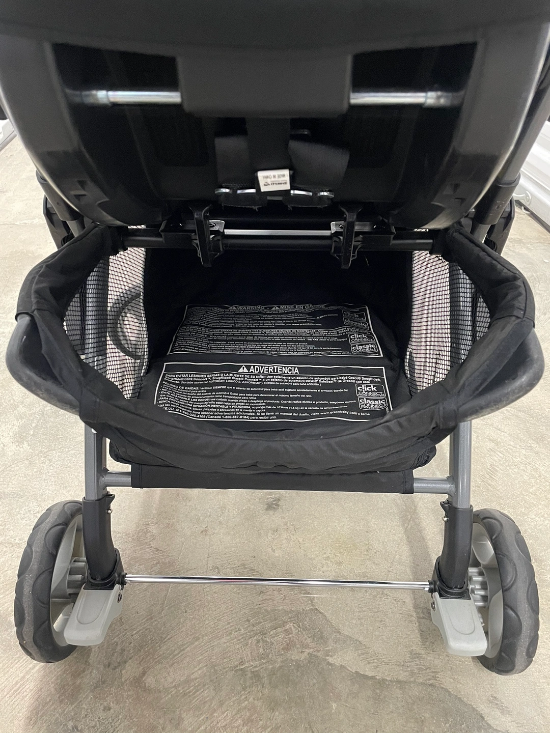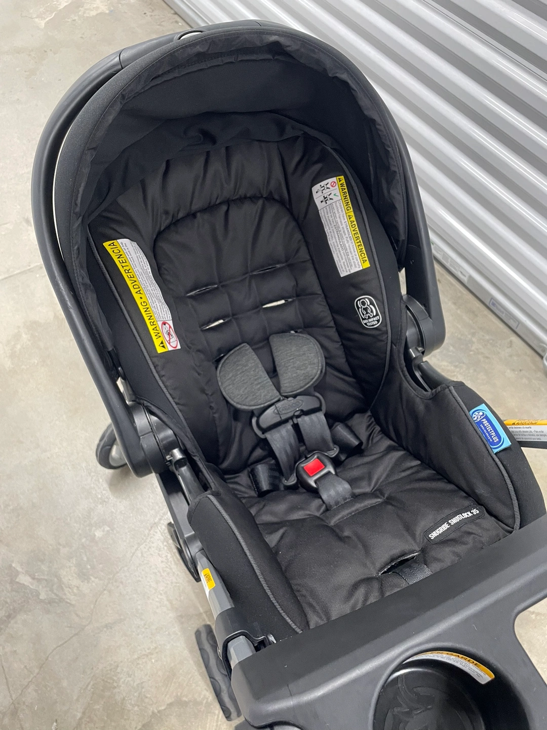 Includes stroller, car seat, and base. Stroller has a cup holder and storage basket. Car seat and stroller are in great condition. CLEAN.