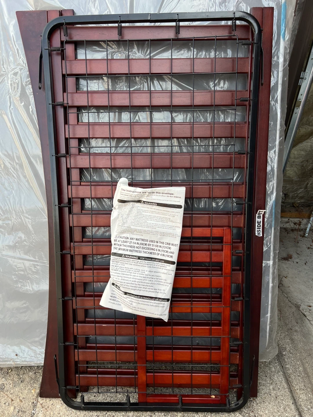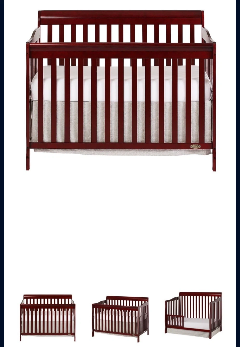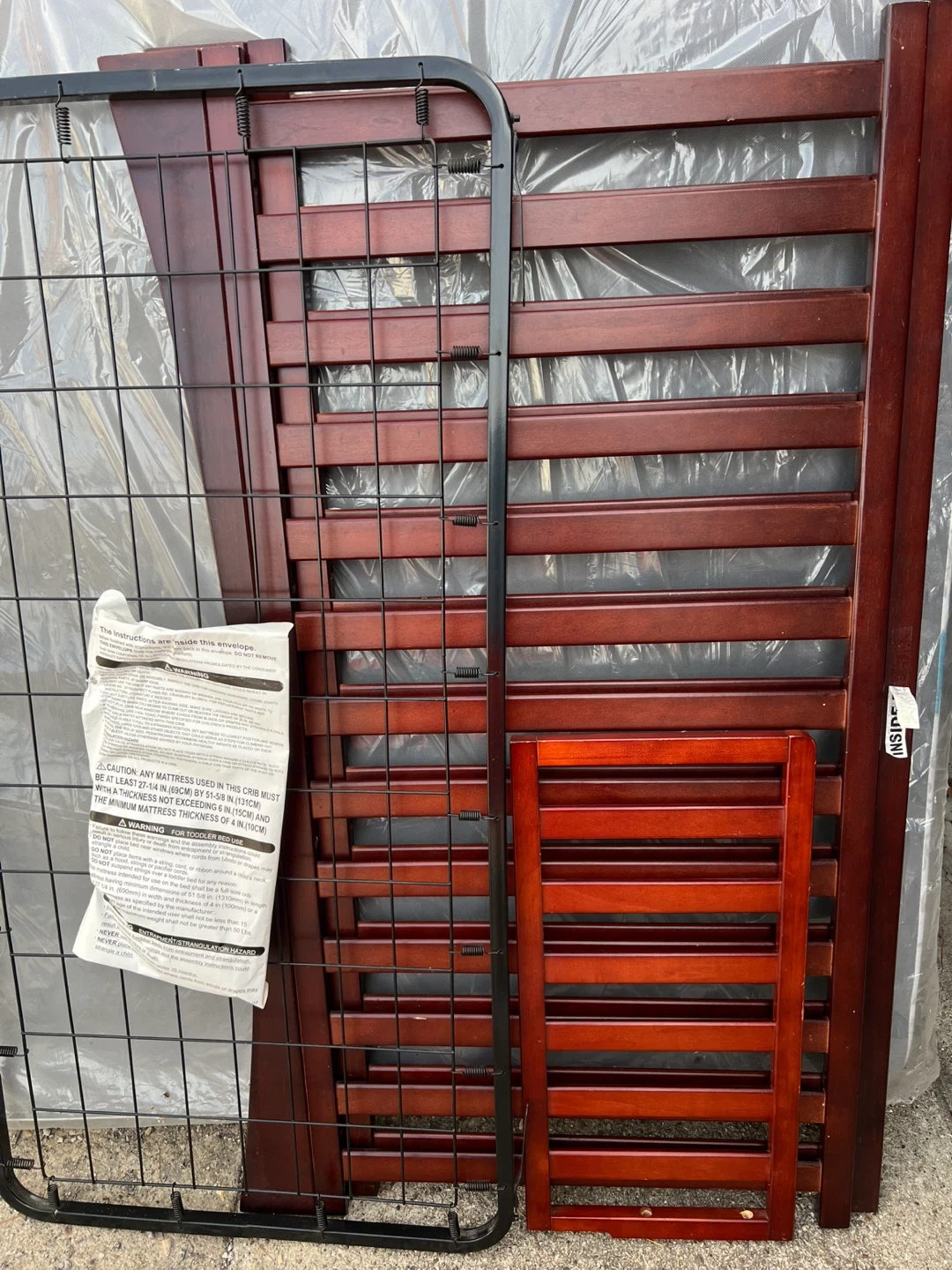 Selling a Graco convertible crib with a beautiful espresso finish! It's in great condition and ready for a new home. This crib can convert to multiple stages as your child grows, offering long-term use. Perfect for any nursery! Comes with all the hardwares.