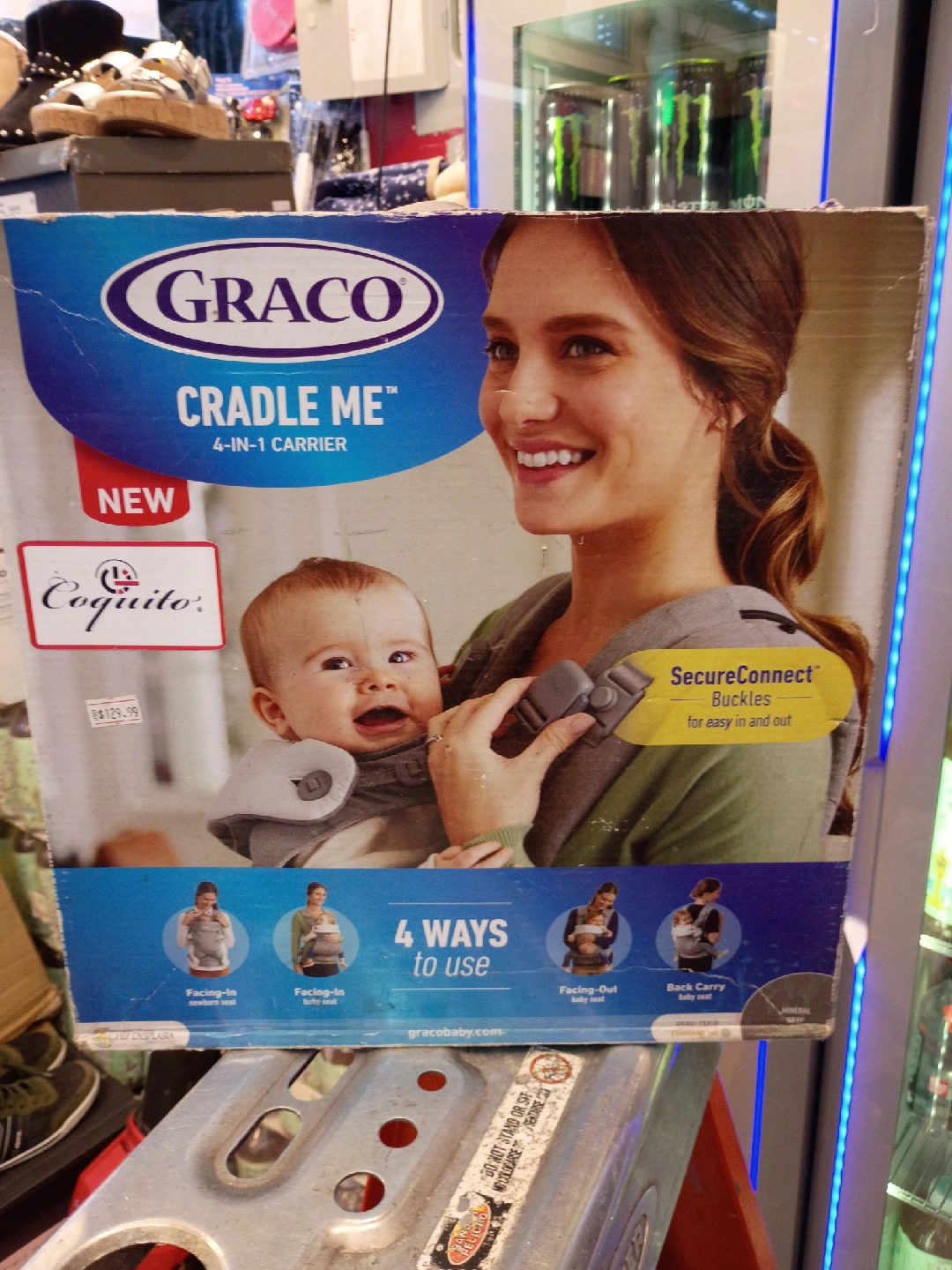I'm selling a brand new Graco Cradle Me 4-in-1 Carrier! It has SecureConnect buckles for easy in and out. There are 4 ways to use it: Facing-in newborn seat, Facing-in baby seat, Facing-out baby seat, and Back Carry baby seat. Originally bought for $129.99