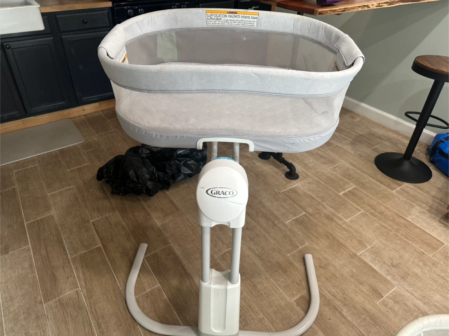 Selling a Graco DreamMore Bedside Bassinet Deluxe with calming motion! It's in great condition and ready for a new home. Originally bought for $319.99, this bassinet offers a cozy and safe sleeping space for your little one