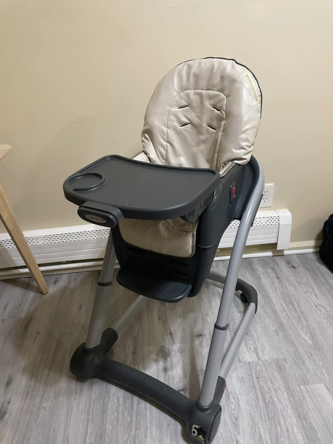 60Selling a Graco high chair in good condition! It's perfect for meal times and keeping your little one secure. The chair features a comfortable seat and a convenient tray for easy feeding. It's easy to clean and adjust as your child grows. Great for babies and toddlers!