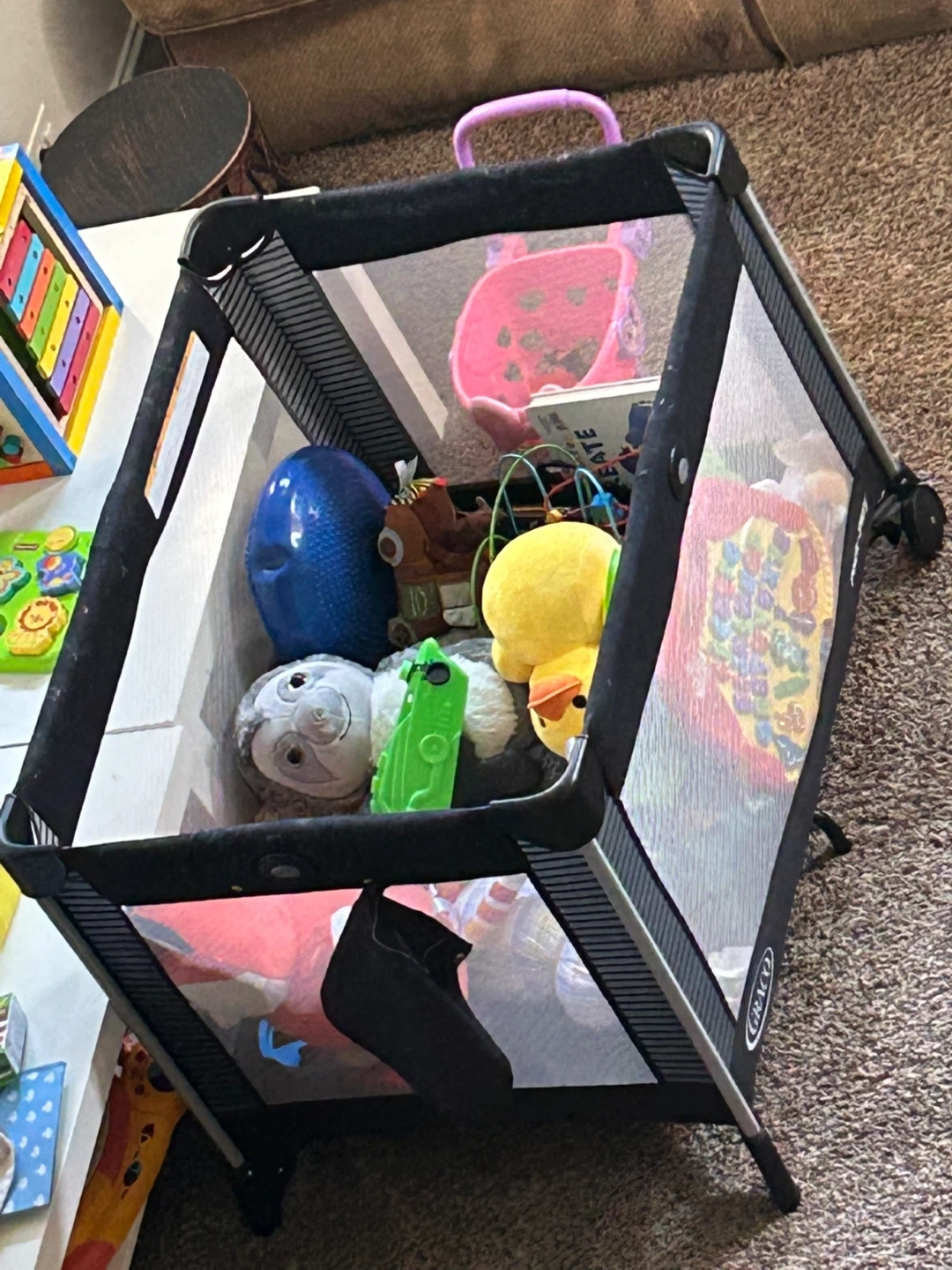 Selling a Graco Pack 'n Play playard! It's a portable crib that's easy to set up and take down. It comes with a carrying bag for easy transport and storage. Perfect for travel or keeping at grandma's house!