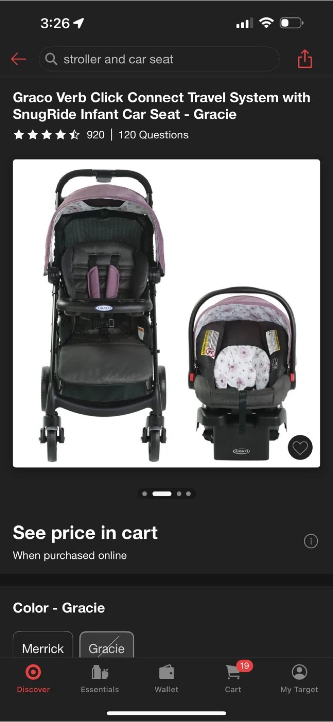Selling a Graco Verb Click Connect Travel System in the Gracie color. It includes both the stroller and the SnugRide infant car seat and base. The car seat is a SnugRide 30.
