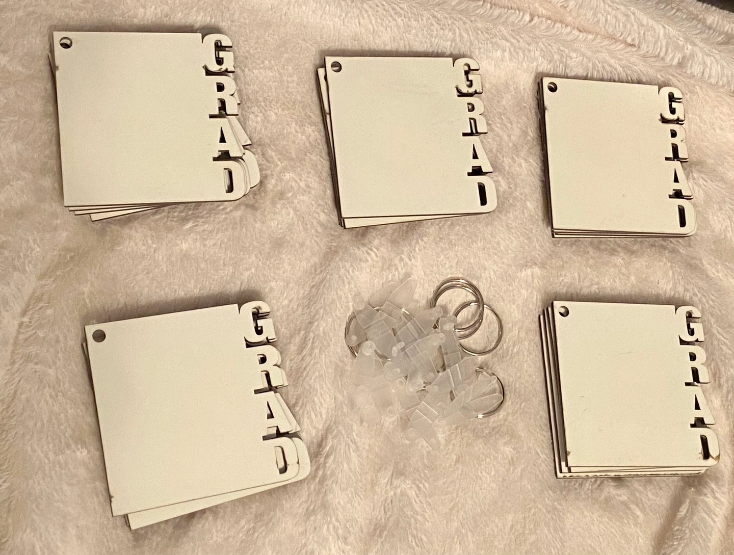Double-sided sublimation blank key chains. Each set comes in a bundle of four sublimated blank key chains with the hooks. Must remove plastic film before sublimating on. 400 degrees 60 sec. Size 75mm. Let me know if you're interested!