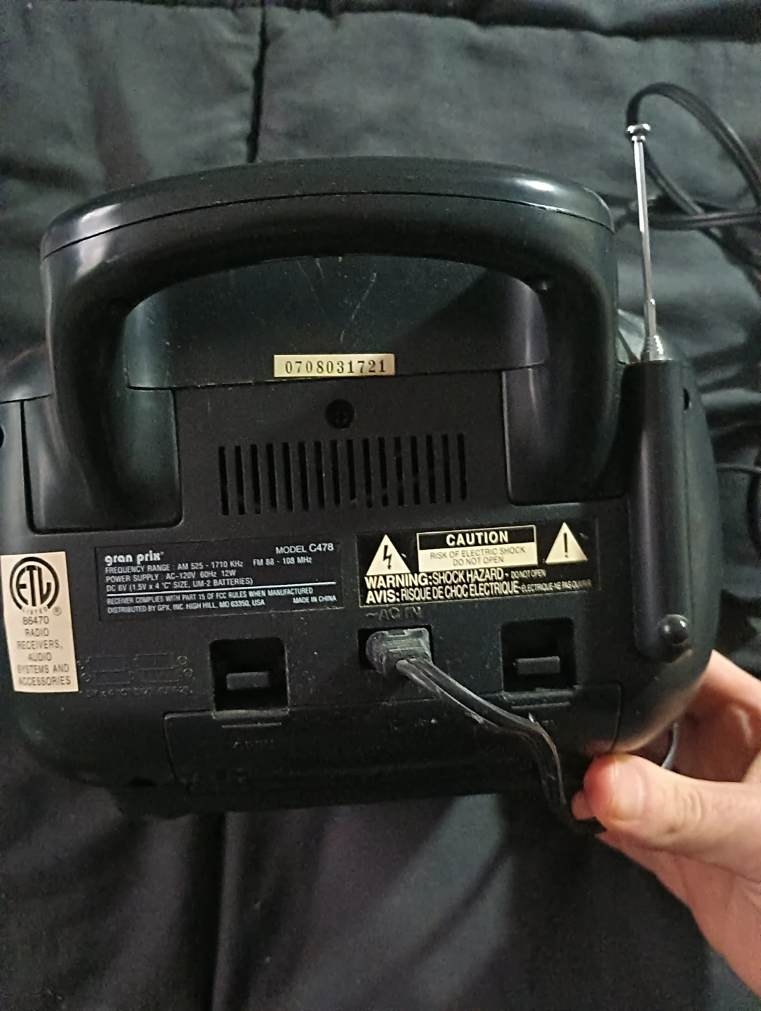 70Selling a Gran Prix C478 AM/FM stereo cassette player. It has a power supply of AC 120V 60Hz 8W. The AM frequency is 525 - 1710 KHz and the FM frequency is 88 - 108 MHz. It's in good working condition!