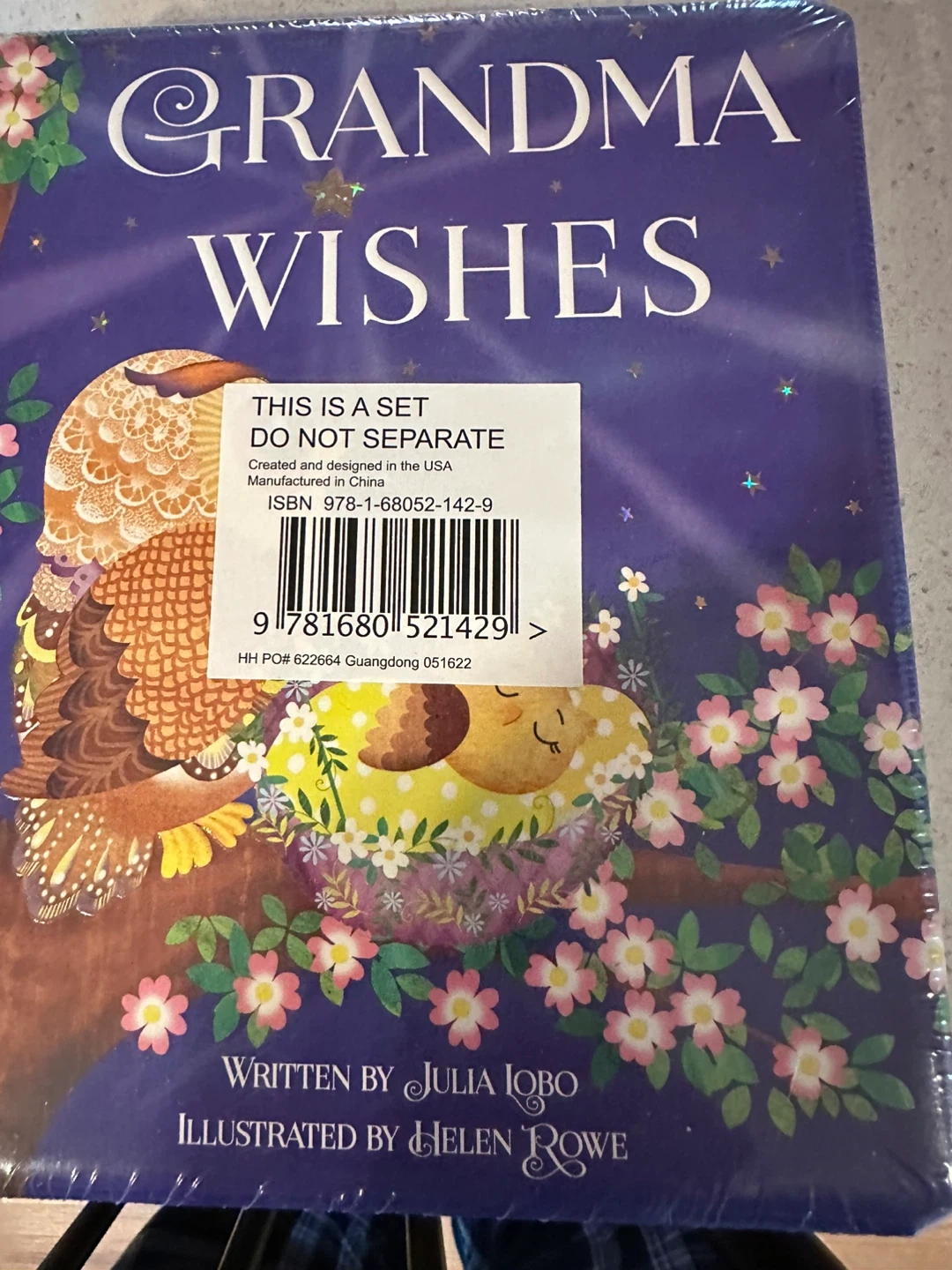 I'm selling a set of two children's books: - Grandpa's Wish List, written by Madison Lodi and illustrated by Sydney Hanson - Grandma Wishes, written by Julia Lobo and illustrated by Helen Rowe These books are brand new and still sealed in their original packaging! They would make a great gift for a young child. Perfect for a new Grandma and Grandpa!