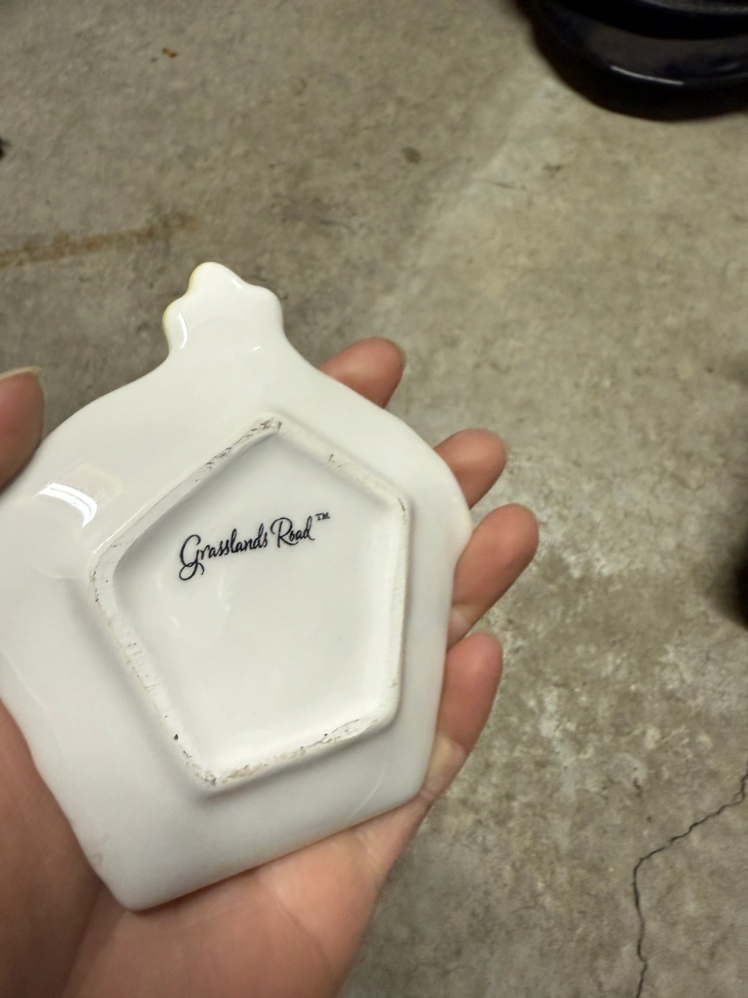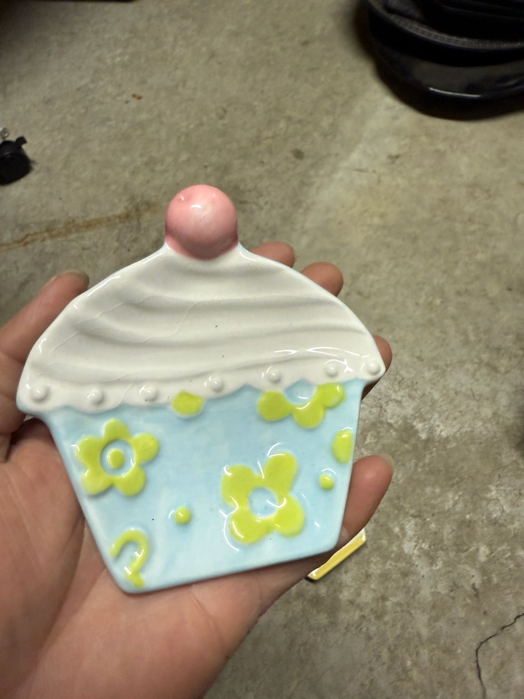 160A small ceramic dish shaped like a cupcake. It is decorated with flower patterns. It has a raised decorative top. You can use this dish to hold your jewelry or other small trinkets. Pick up by Irving Park and Cumberland