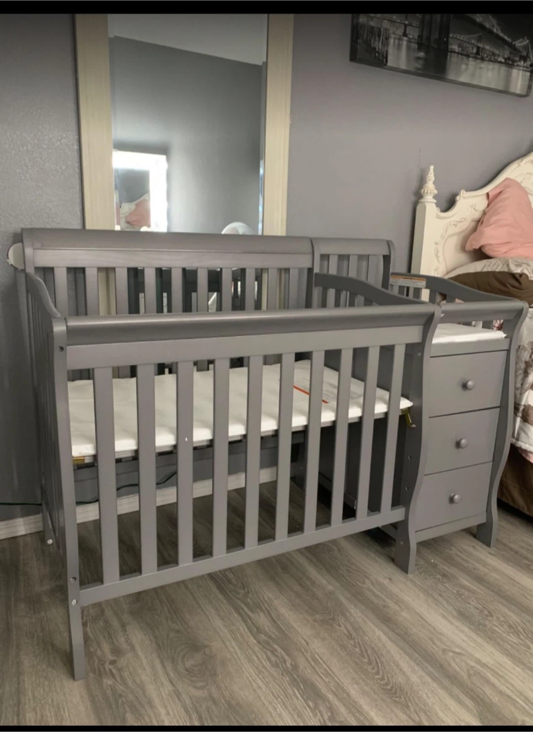 10Selling a gray baby crib and bassinet. The crib is new never been used and the bassinet are in great condition and ready for a new home. Perfect for your little one!