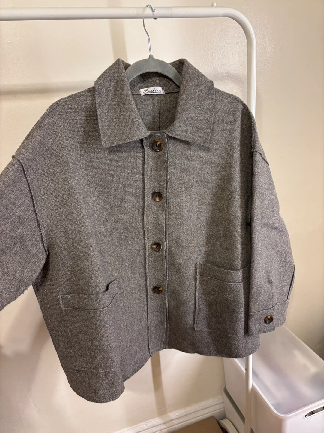 529Selling a cute/elegant gray button-down jacket. The jacket has a relaxed fit and is perfect for layering as it's thin. Size XS-M. Nothing is wrong with it, I'm moving out of the country, so I'm selling. Buy 3 items and I can give you 10% off.