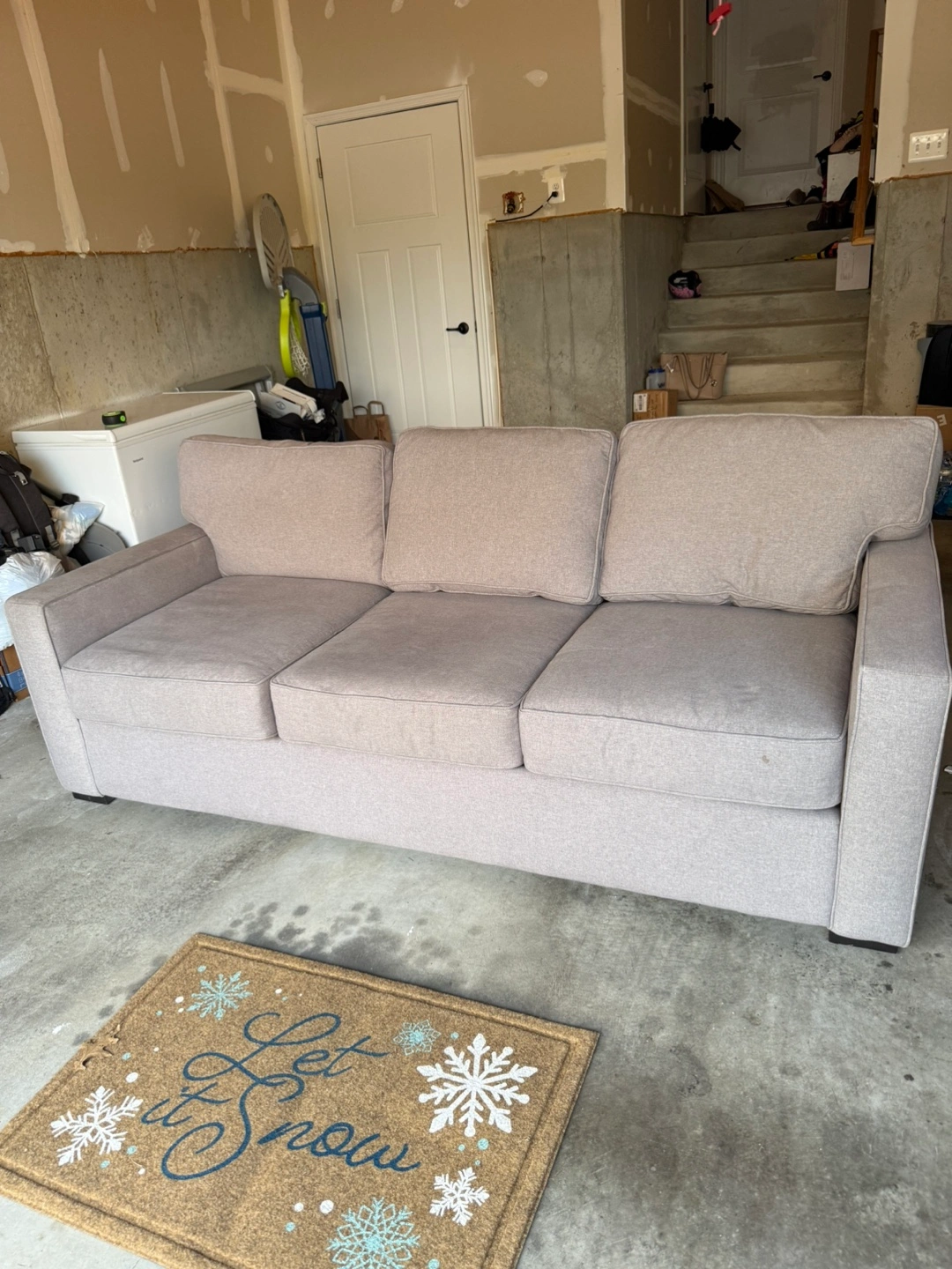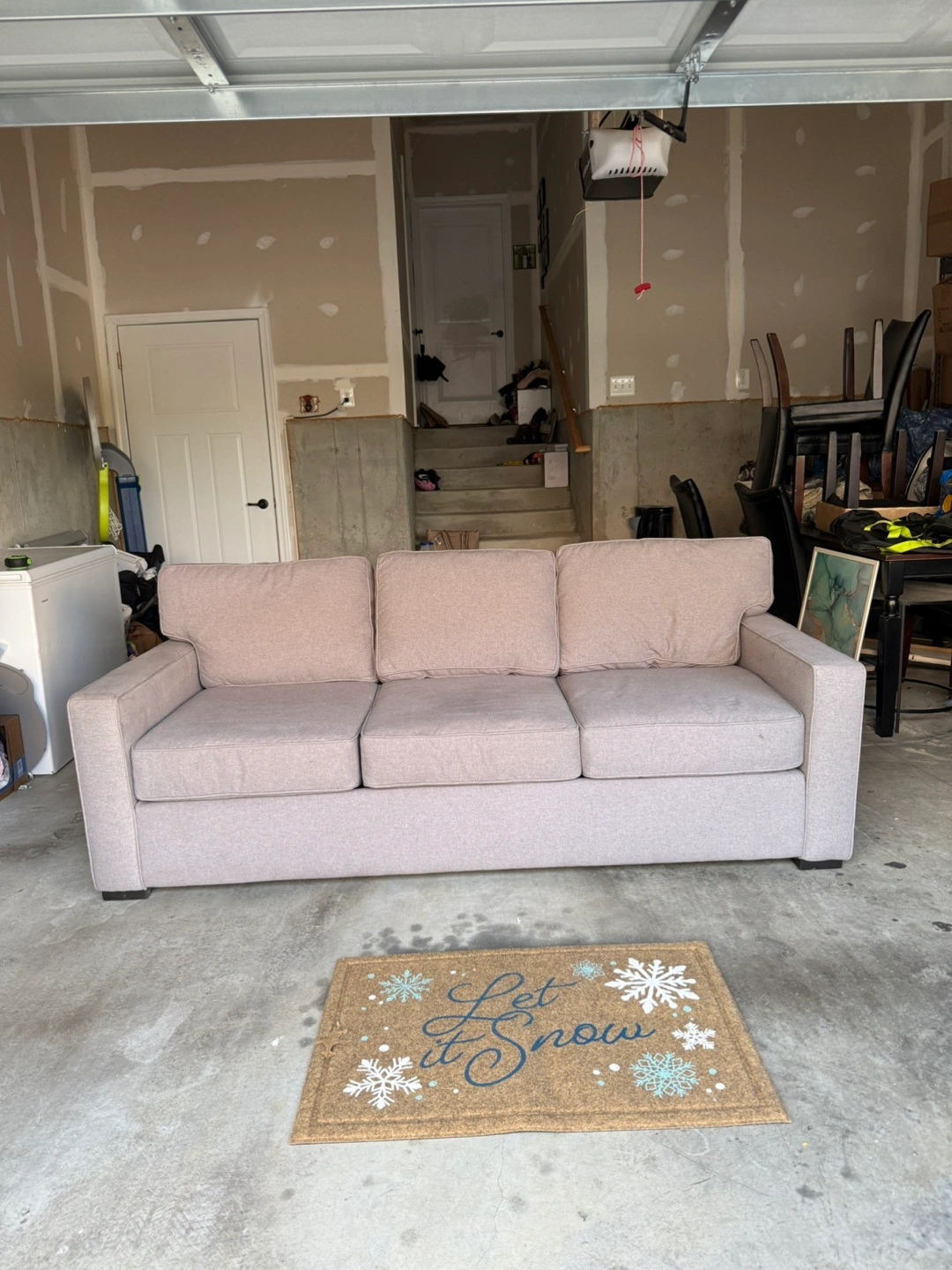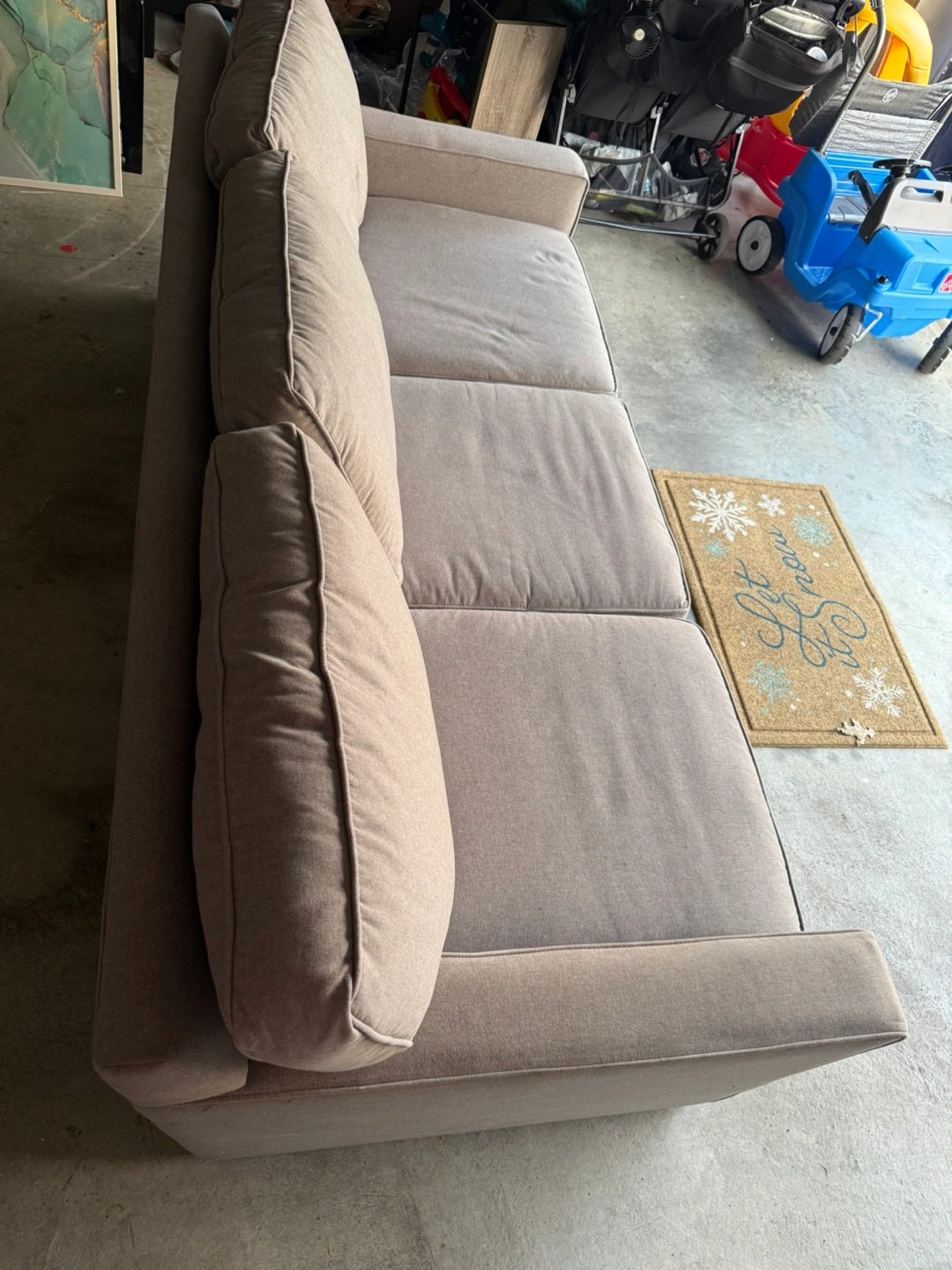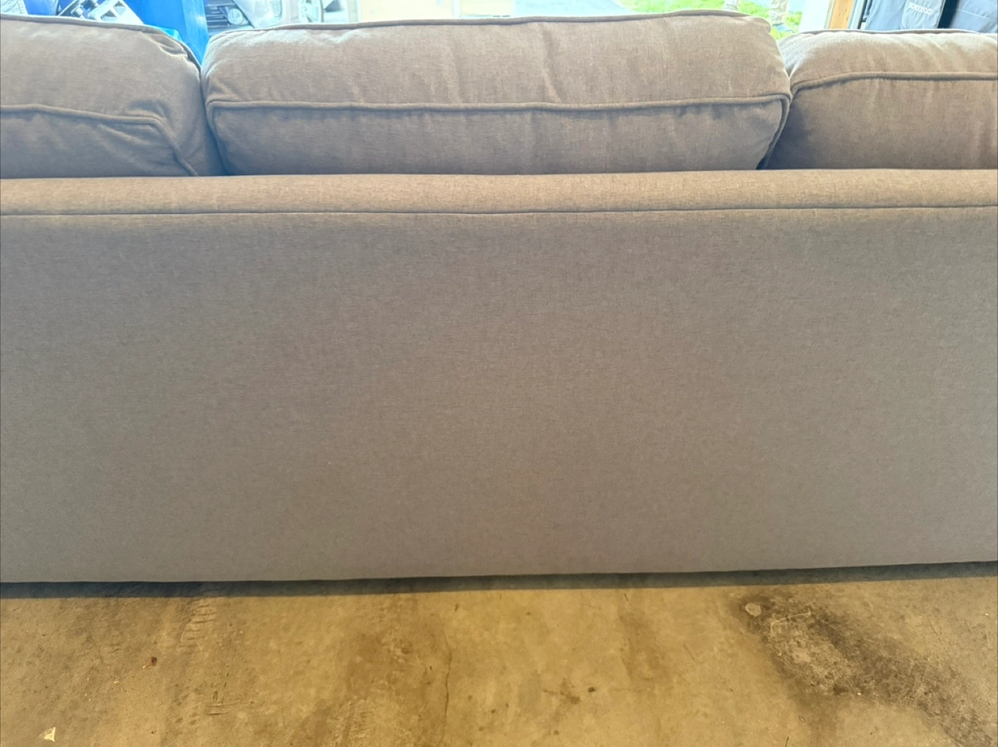 A comfortable couch. The cushions look great and well-kept. Features a neutral gray color and rectangular shape. You can really unwind after a long day on this couch. Item is located Washington, D.C. MEASUREMENTS L - 86 inches H - 30 inches D - 40 inches ——— Delivery available for an additional charge