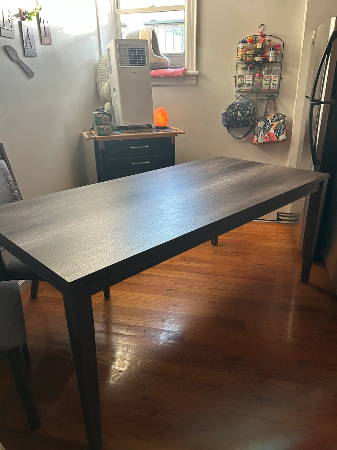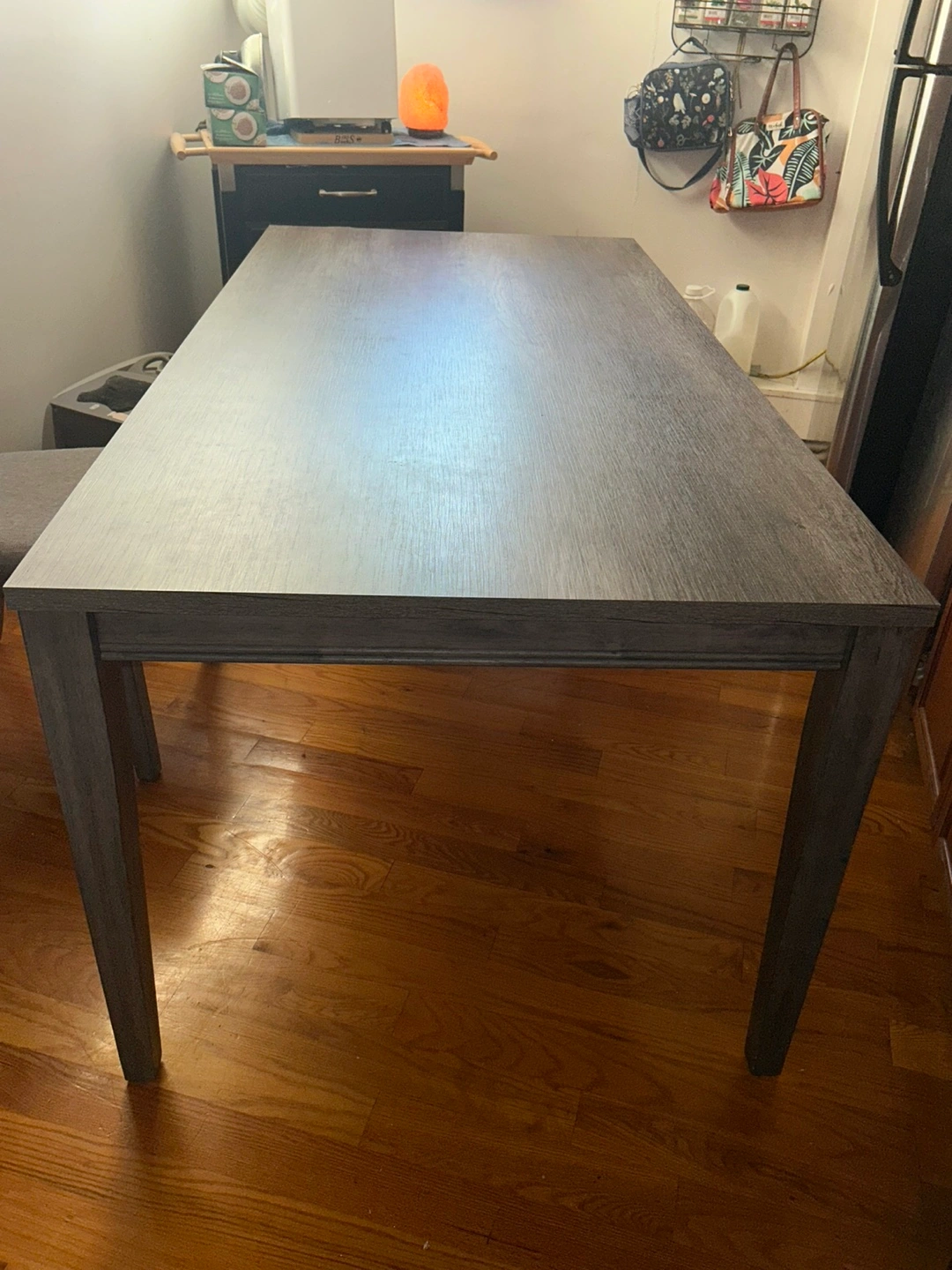 Selling this gray dining table in gray. It's in great condition and ready for a new home. The table has been disassembled (legs detached) for easier transport.