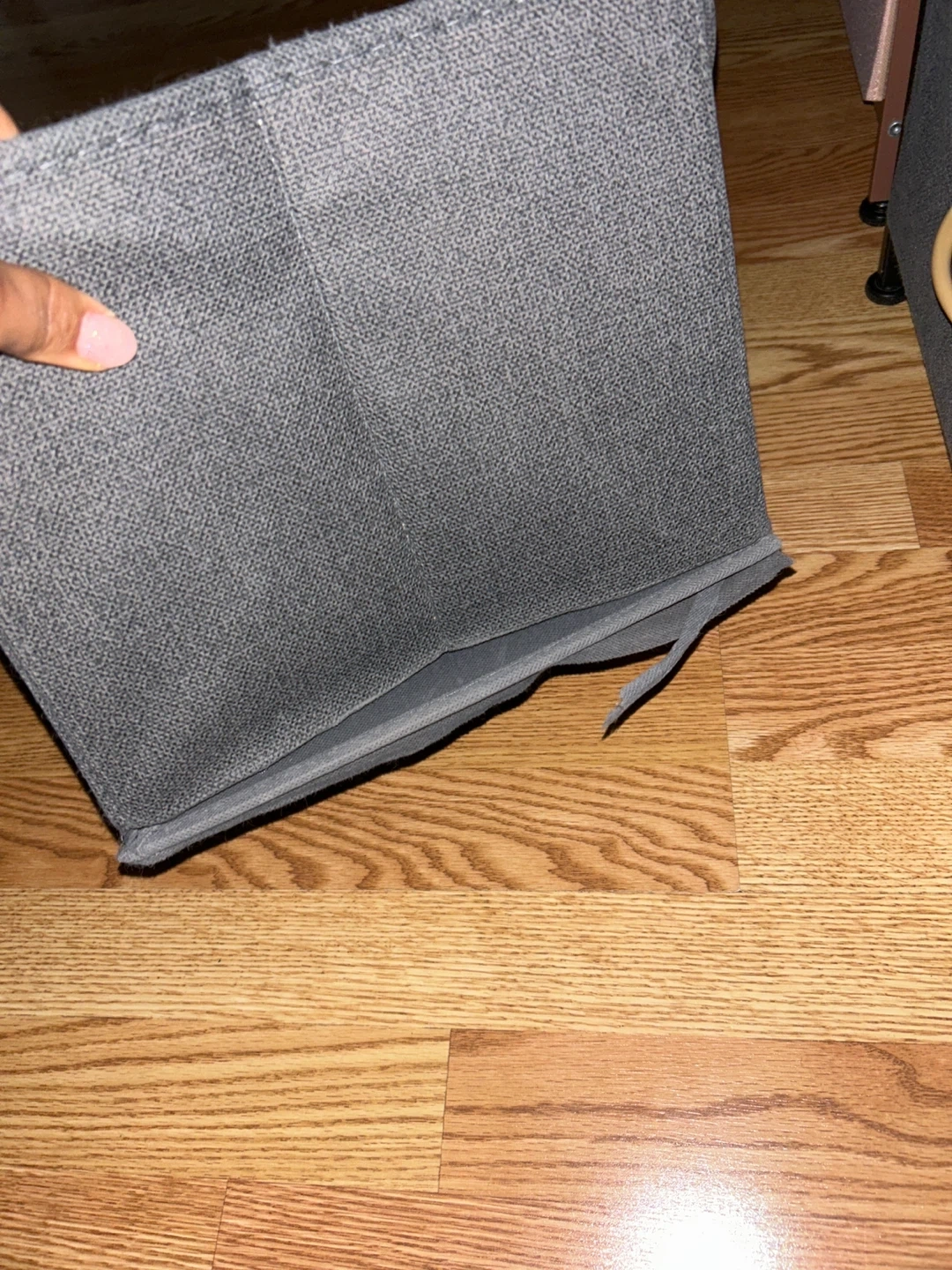77I'm selling a gray fabric 4-drawer storage tower. This is a great storage solution for any room! It features a sturdy frame and four fabric drawers, perfect for organizing clothes, accessories, or household items only one drawer is letle reep