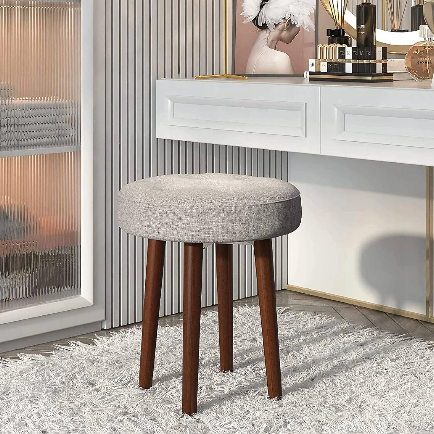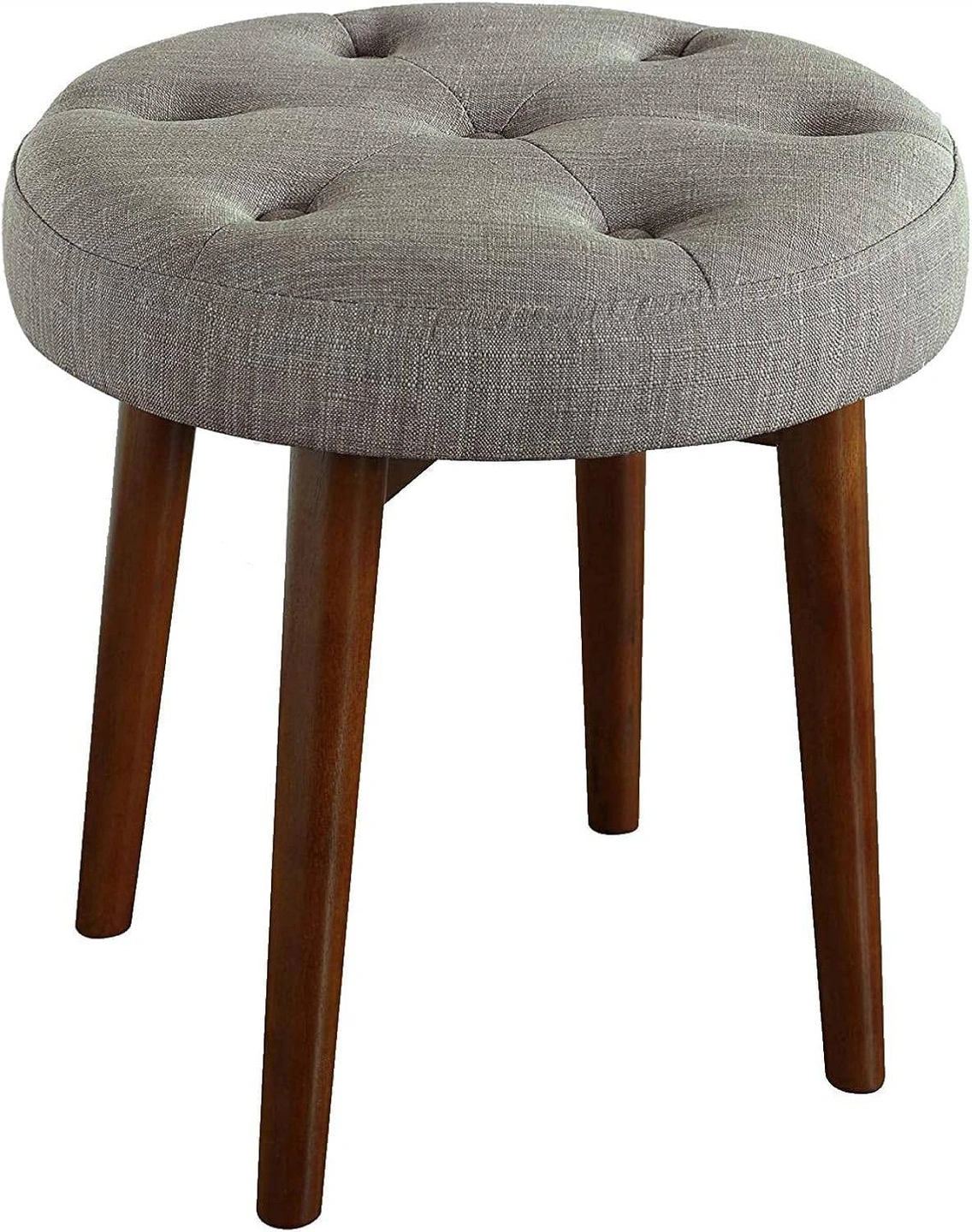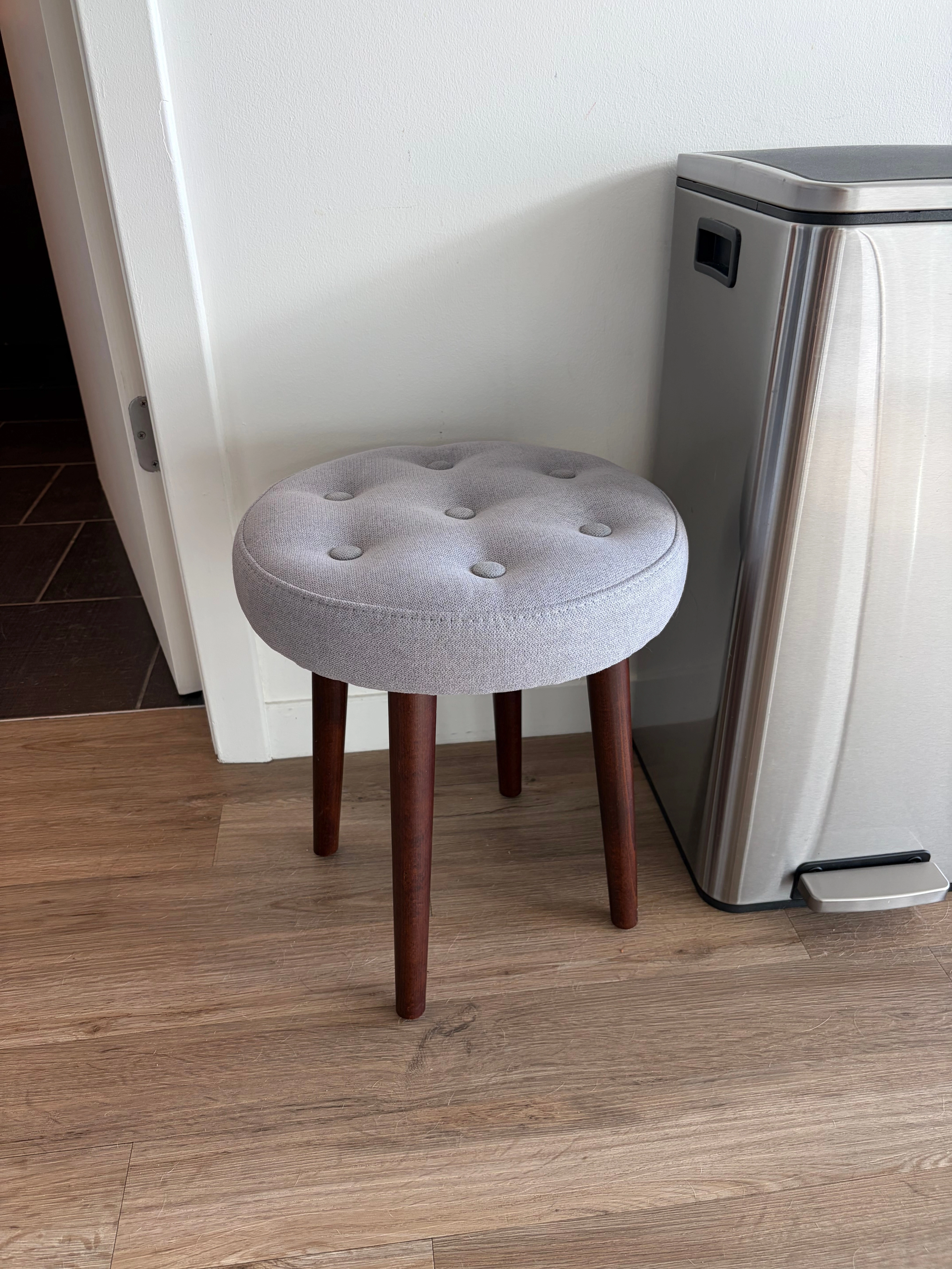 39Selling a chic, compact, and super versatile stool—perfect for an entryway, vanity, or small living room! Key Use: Ideal as a convenient shoe-changing bench by the door. It's compact but sturdy enough to sit on (supports up to 300 lbs). Style & Material: Modern design with soft gray velvet/knit fabric and solid wooden legs. Condition: Excellent condition with light usage. No major blemishes or stains. Size: Small and space-saving. (14.2"D x 14.2"W x 16.5"H). Original Price: Purchased for $45. Pickup: Lakeview East / Wrigleyville. Payment: Venmo or Cash only.
