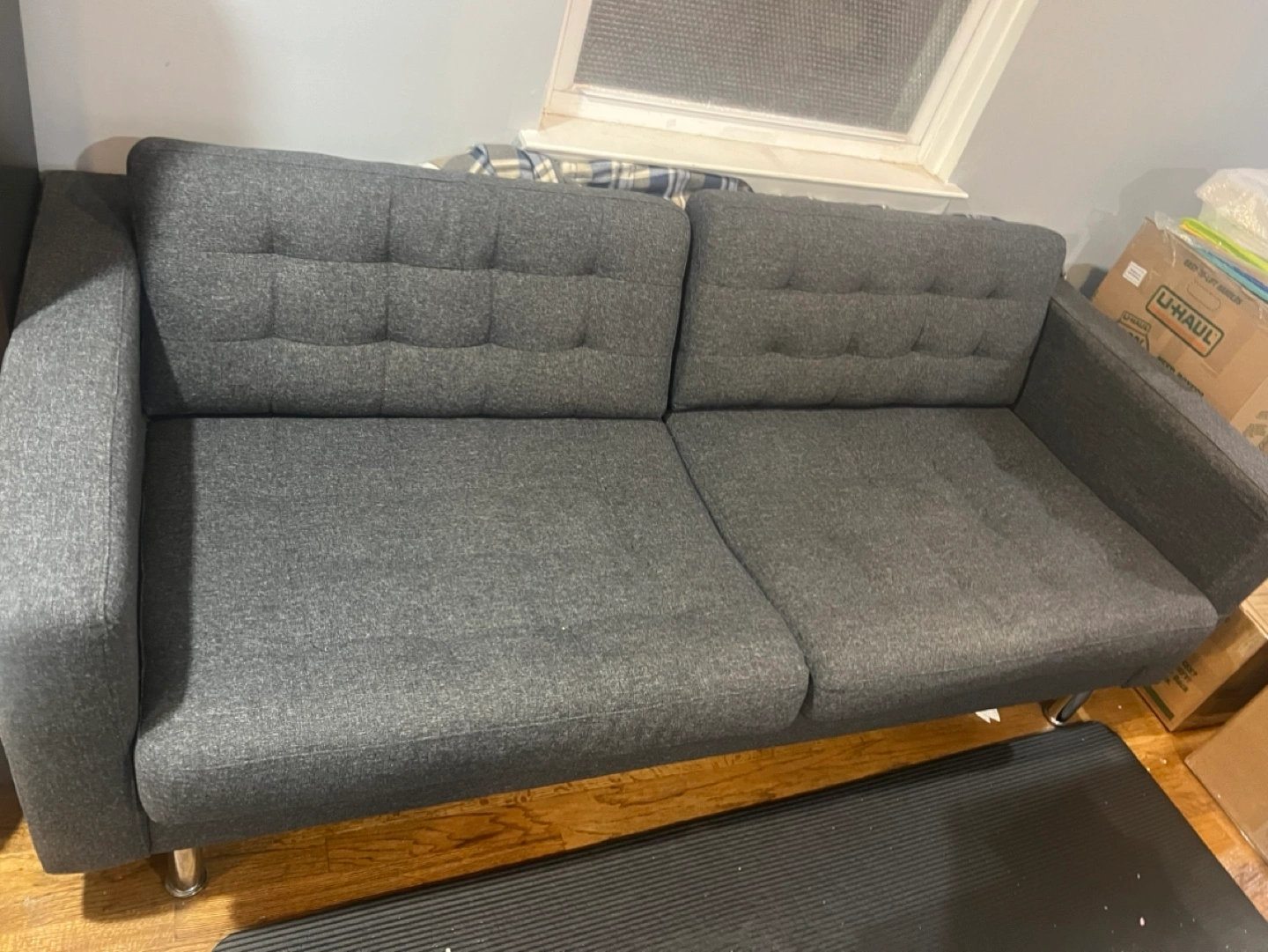 Gray futon IKEA sofa with metal legs. In good condition. I can delivery for you if you live in nj