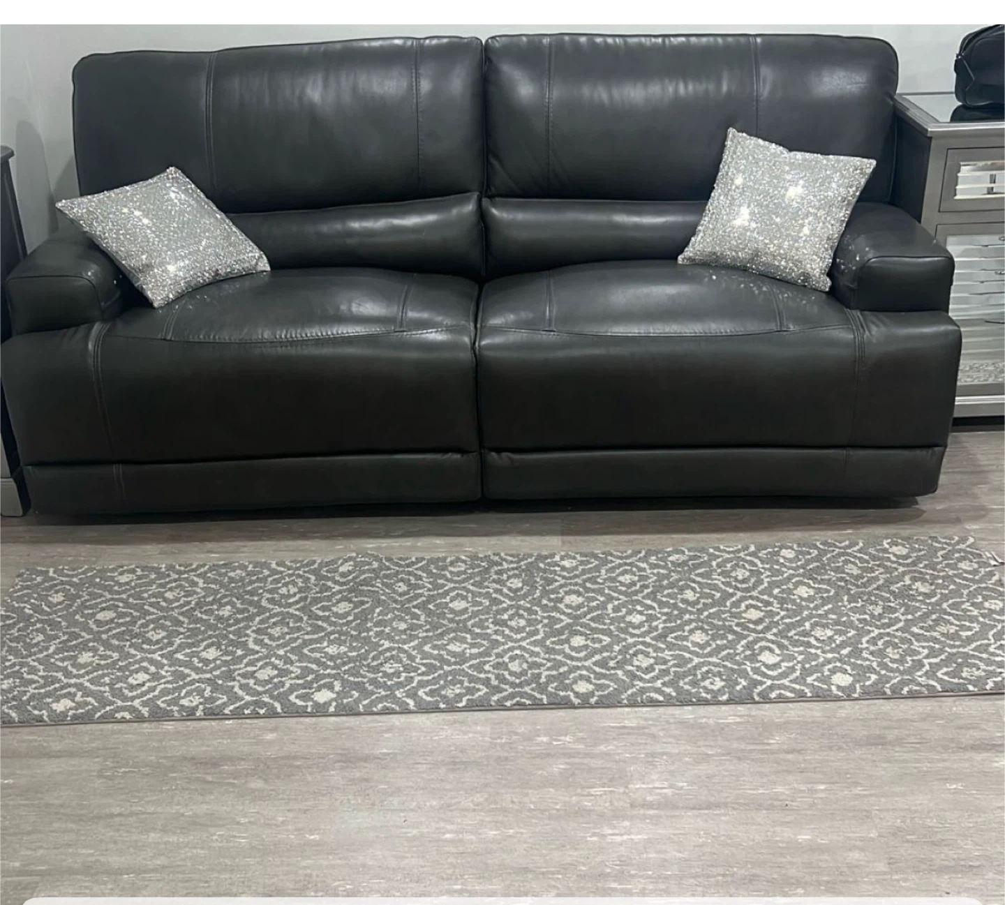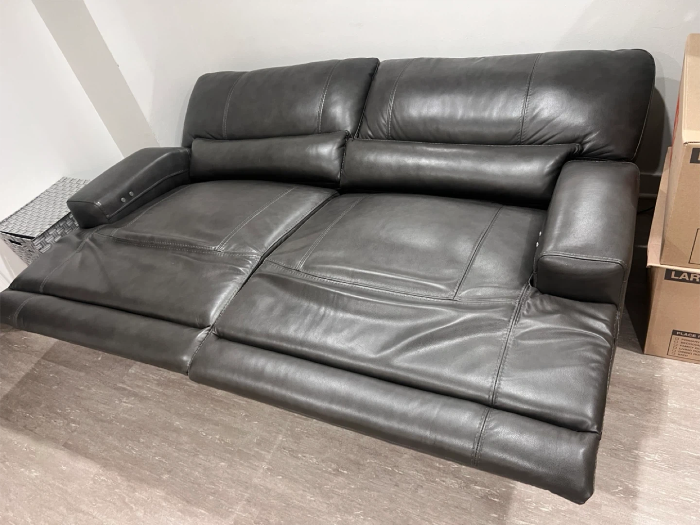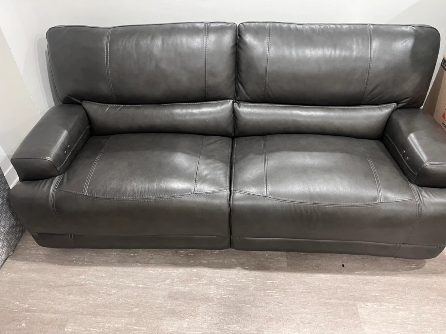 16Selling a gray leather soda recliner. It has an electric reclining feature on each side. The sofa is like new condition and would be a great addition to any living room or entertainment area need gone asap please contact me for more info thank you moving sale Also has other stuff