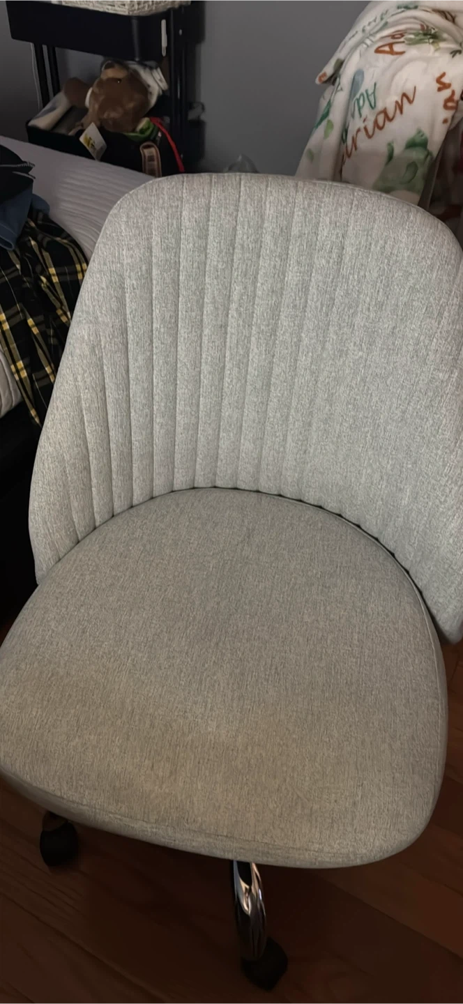 4 White Dining Chairs with Gray Covers