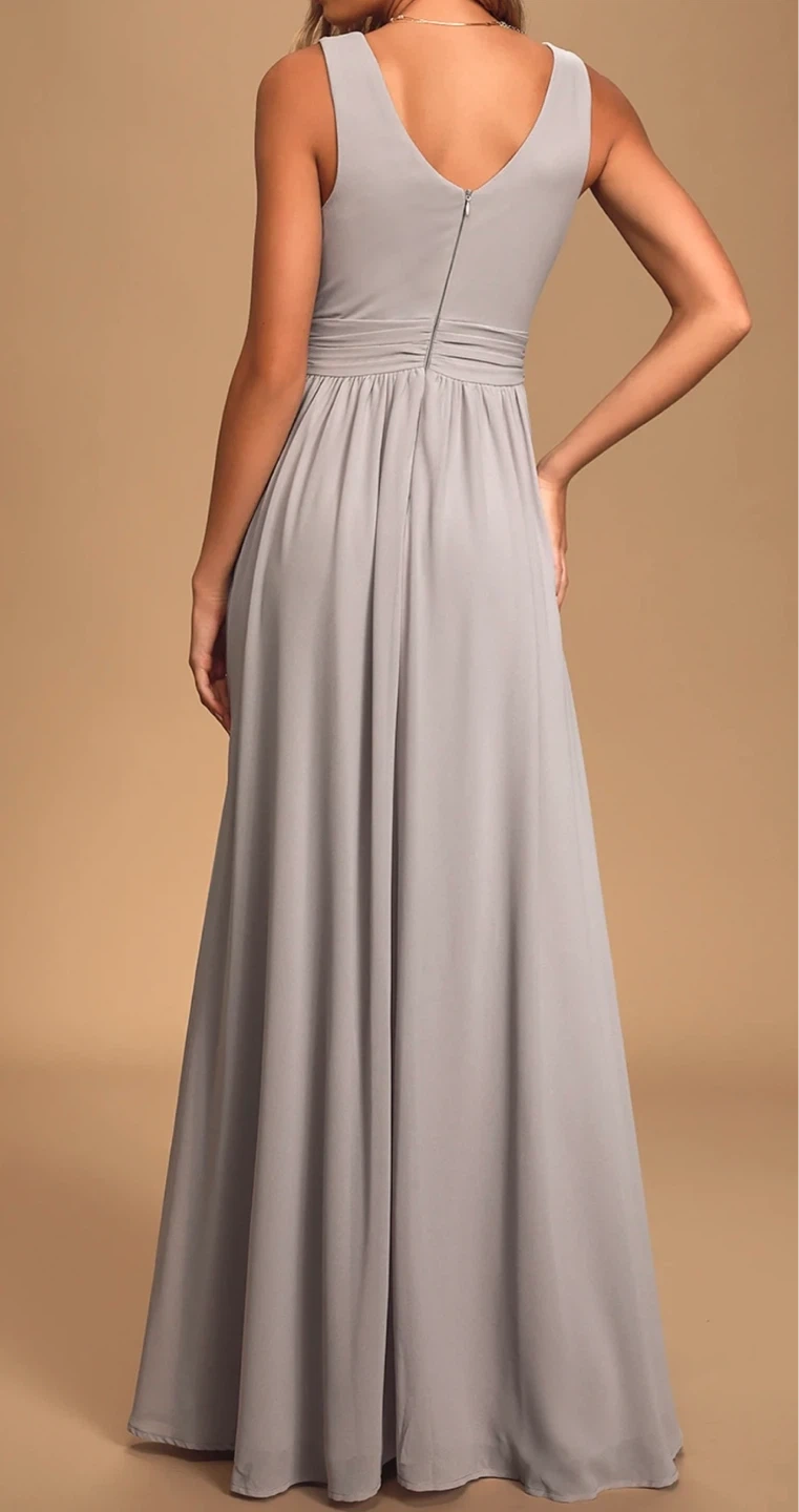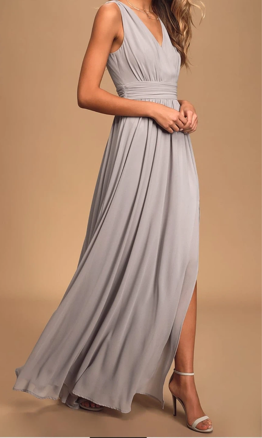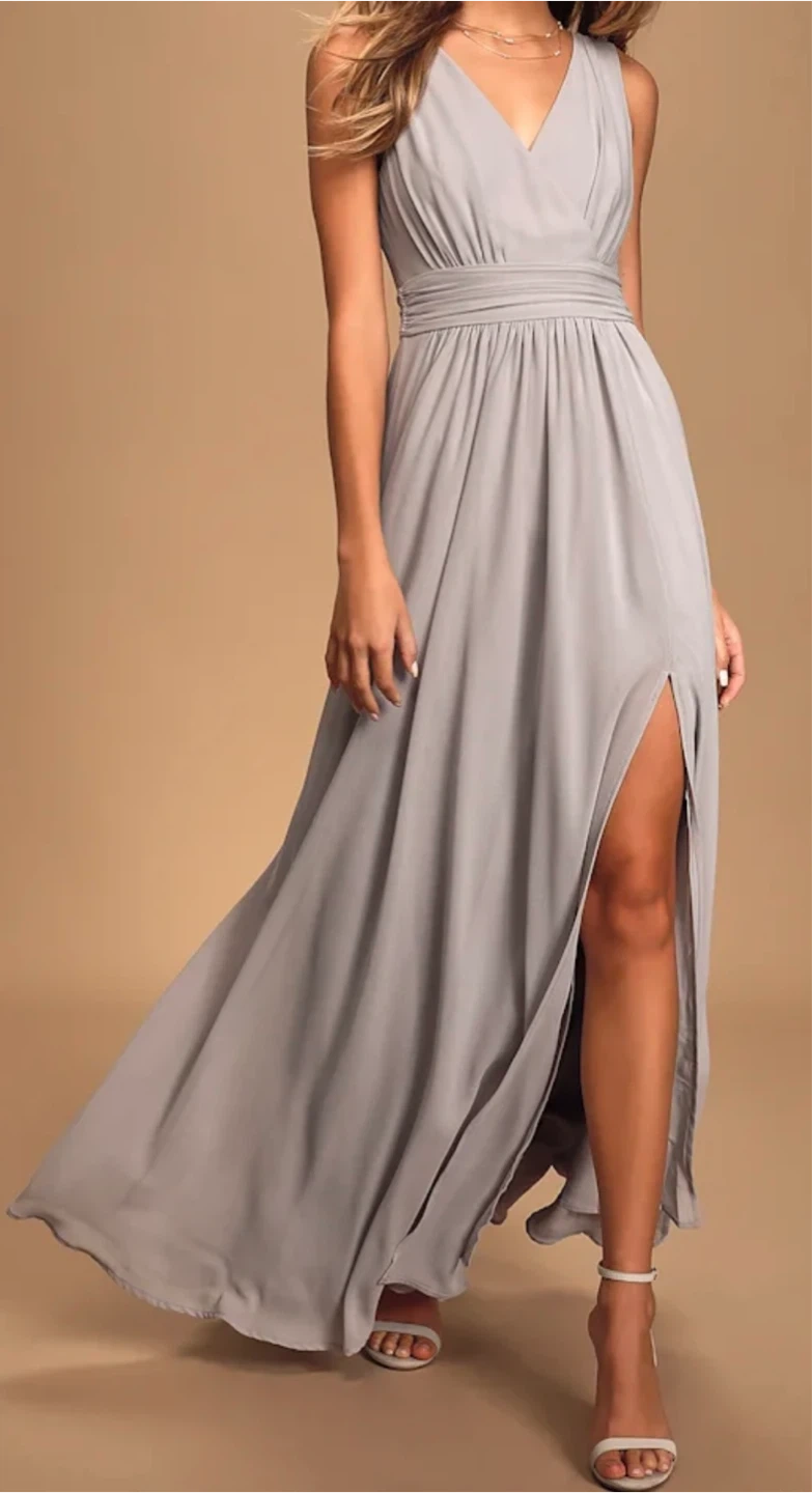 Selling a beautiful gray maxi dress from Lulus! It's perfect for a special occasion or just feeling fancy. The dress has a flattering silhouette and a lovely flow. It's in great condition and ready for a new home!